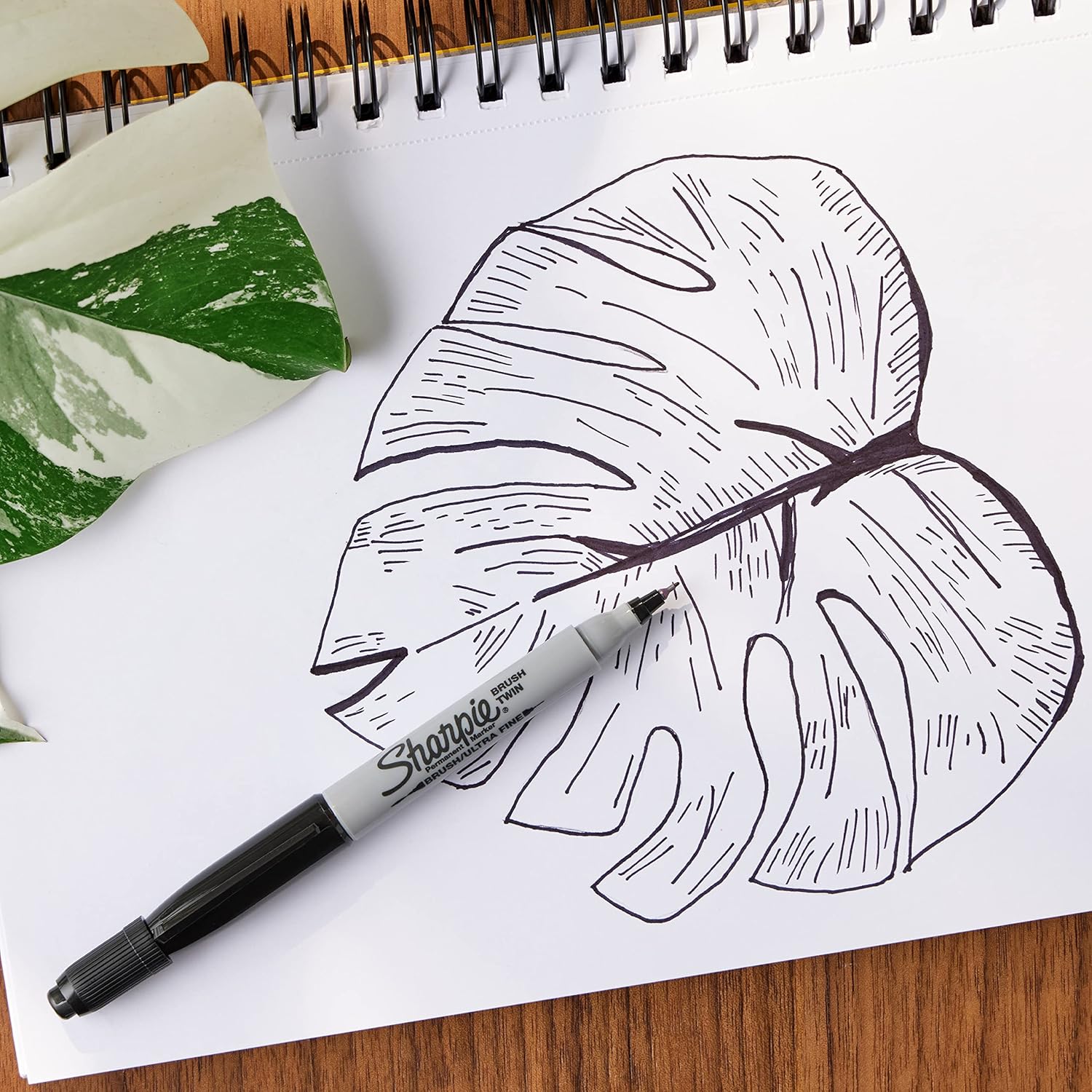 Sharpie Brush Twin Permanent Marker Brush Tip Marker and Ultra Fine Tip Black 12 Count