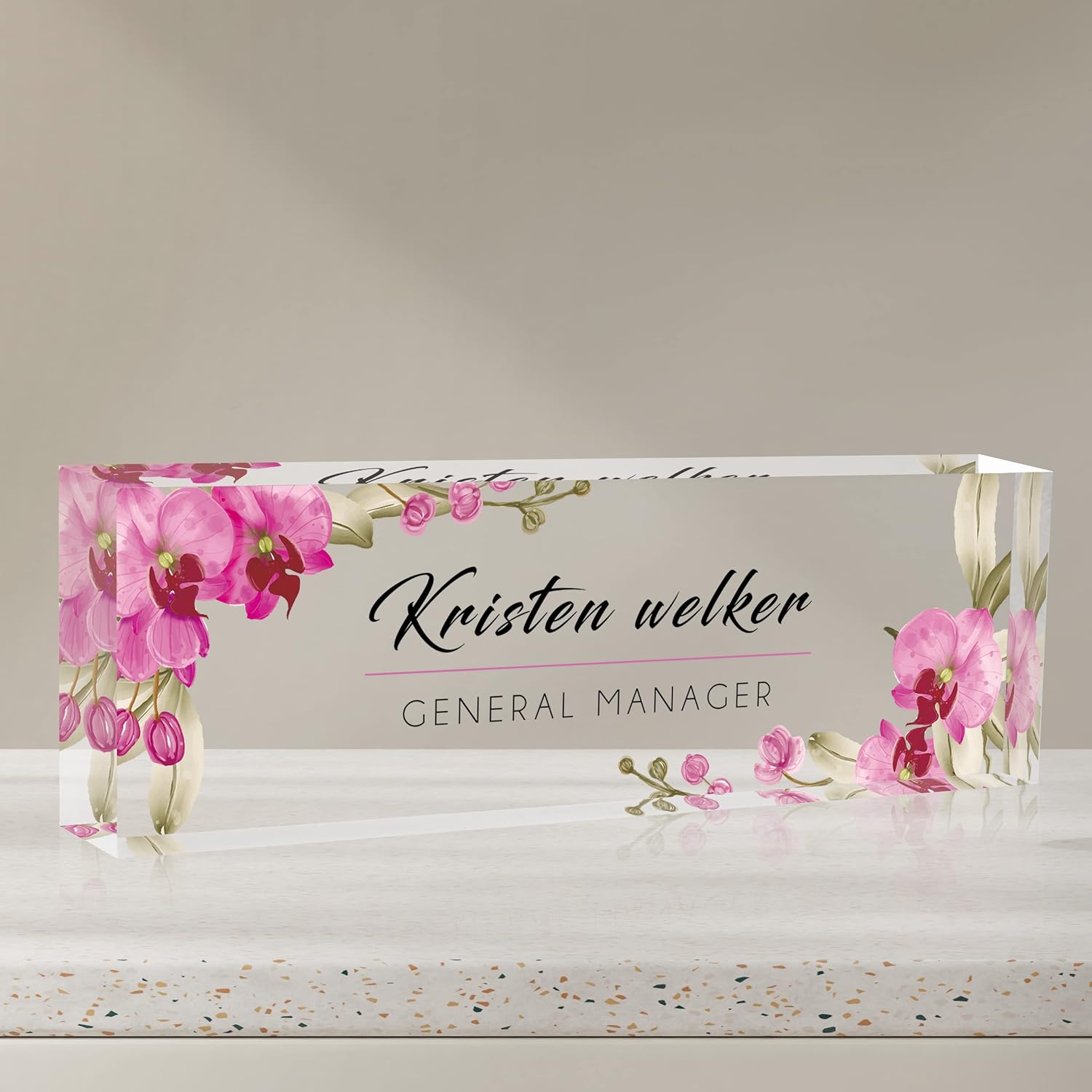 - HIGH QUALITY - Personalized desk name plates are made of high-quality crystal-clear acrylic block, it is not heavy but durable. This office name plate will stand out on any desk!