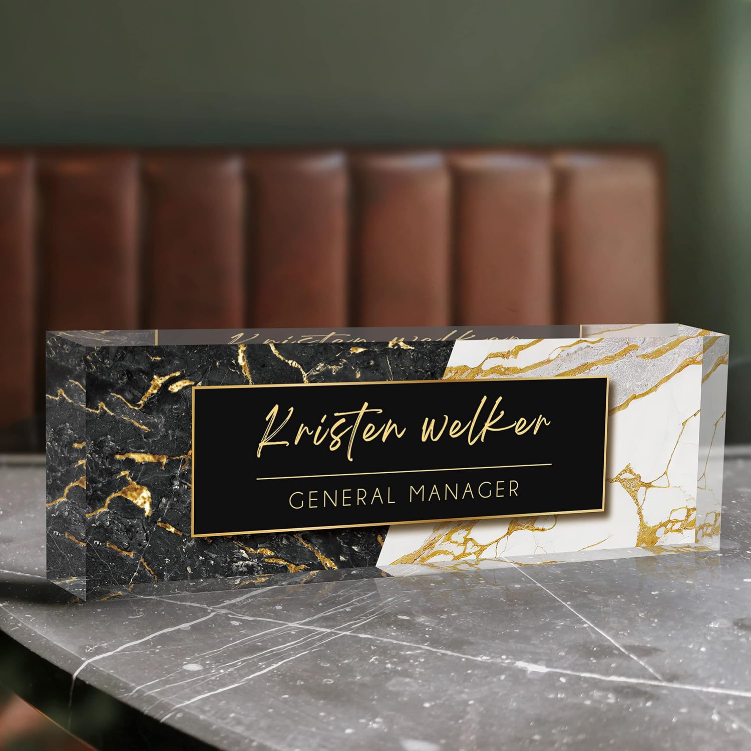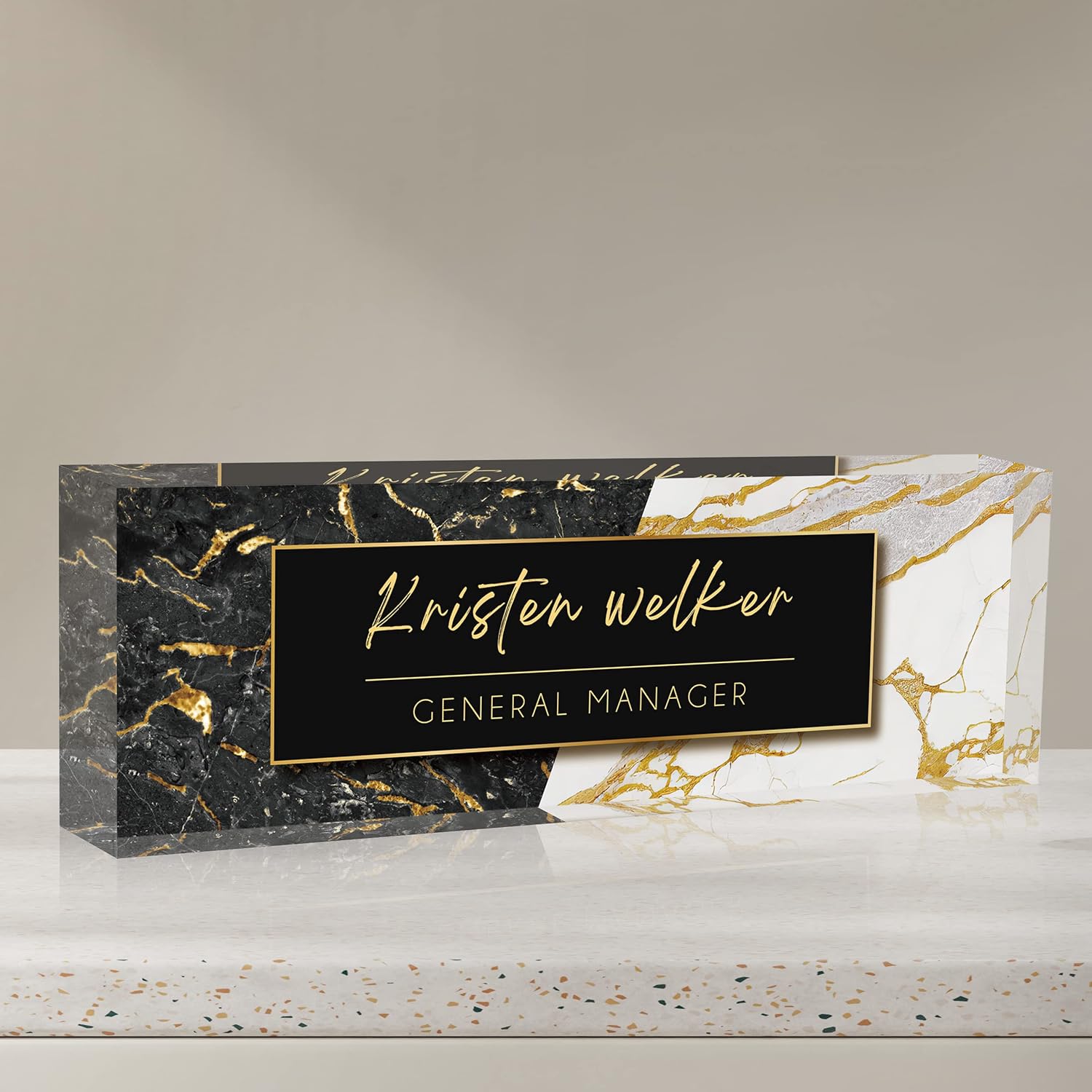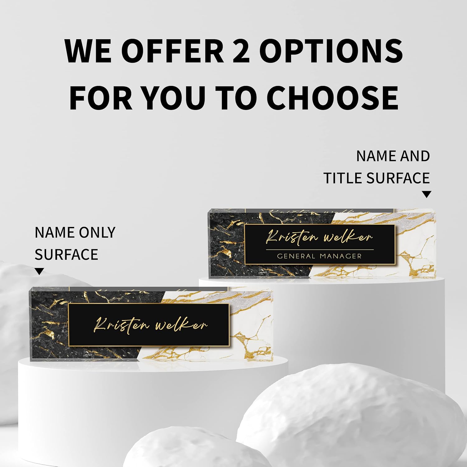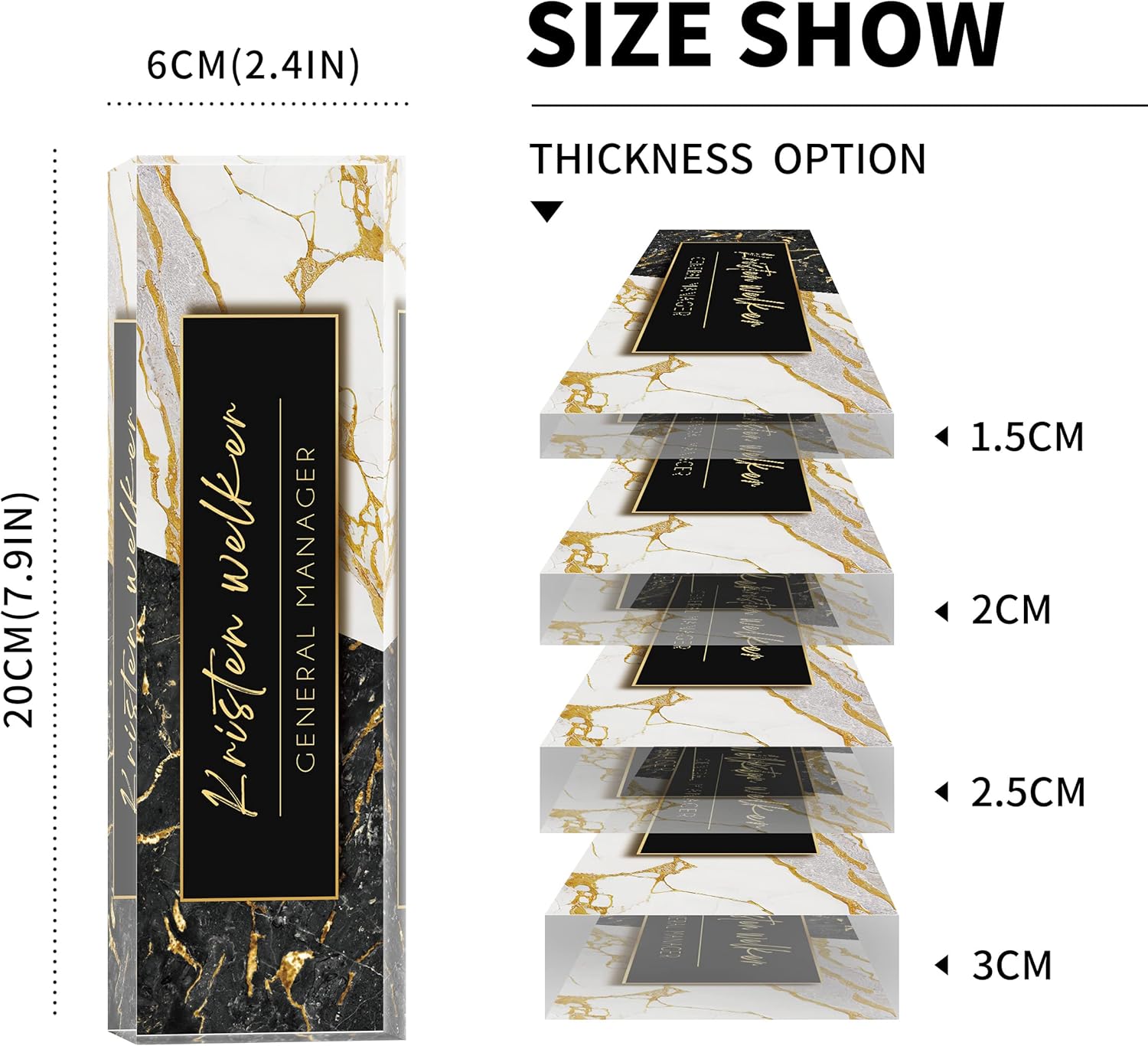 - HIGH QUALITY - Personalized desk name plates are made of high-quality crystal-clear acrylic block, it is not heavy but durable. This office name plate will stand out on any desk!