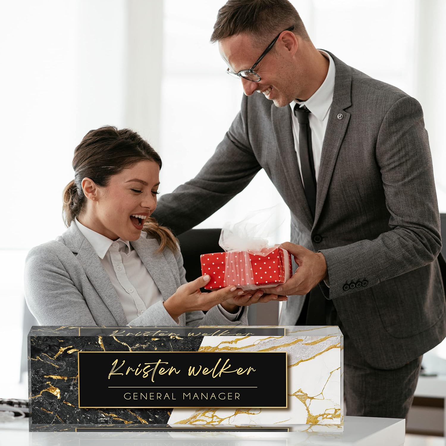 - SURPRISE The LOVED ONES WITH THE ULTIMATE GIFT-If you're looking for a personalized entry gift, office gift, graduation gift, Christmas gift for your boss, colleagues, new hire, family, or yourself, a personalized nameplate for plaque is the perfect gift choice. This personalized name plate for desk as a work anniversary gift , a birthday gift or a holiday gift to let your coworkers know just how much you appreciate them.