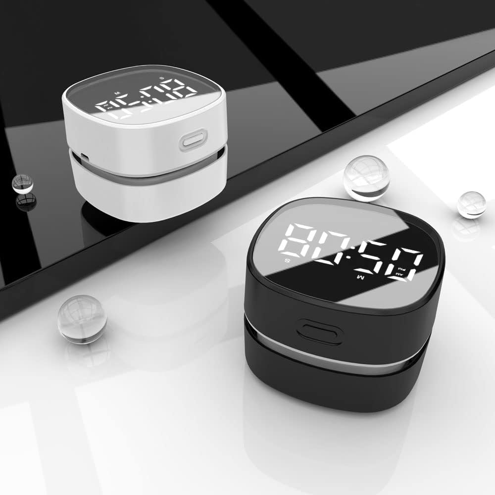 ODISTAR Counter Vacuum Cleaner,Mini Table dust Sweeper Energy with Digital Timer,Endurance up to 400 mins,360º Rotatable for Cleaning Rubber shavings,Crumbs Keyboard of Gifts for Kids(Black)