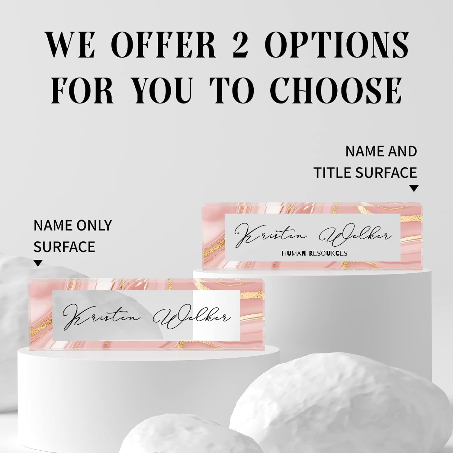 - HIGH QUALITY - The Personalized Name Sign Plates Are Made Of High Quality Crystal Clear Acrylic Blocks. This Office Nameplate Will Stand Out On Any Desk!We use high-tech UV printers to print on quality clear acrylics glass so you can visualise your memories.