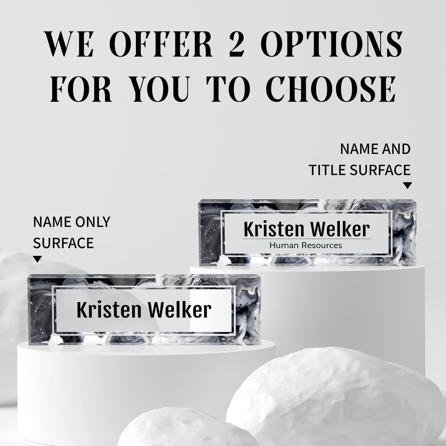 - HIGH QUALITY - The Personalized Name Sign Plates Are Made Of High Quality Crystal Clear Acrylic Blocks. This Office Nameplate Will Stand Out On Any Desk!We use high-tech UV printers to print on quality clear acrylics glass so you can visualise your memories.