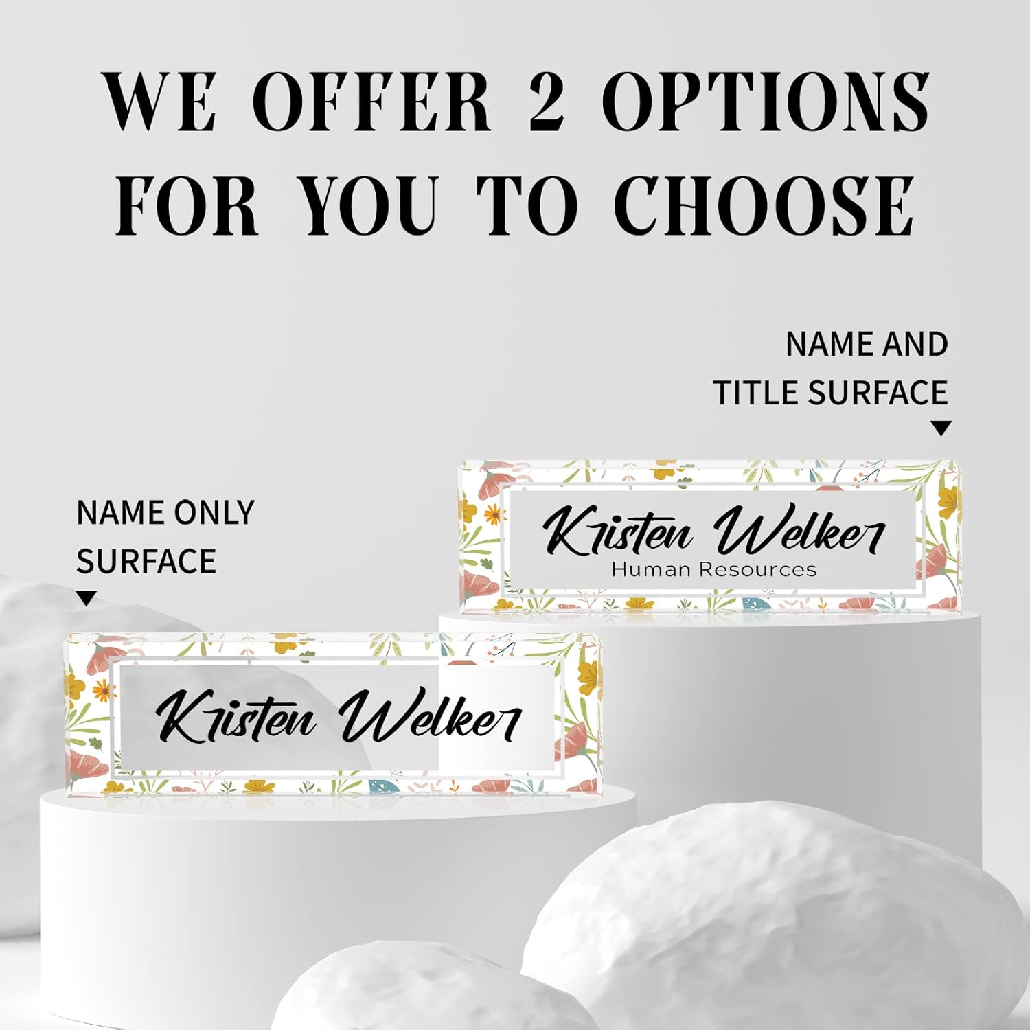 - HIGH QUALITY - The Personalized Name Sign Plates Are Made Of High Quality Crystal Clear Acrylic Blocks. This Office Nameplate Will Stand Out On Any Desk!We use high-tech UV printers to print on quality clear acrylics glass so you can visualise your memories.