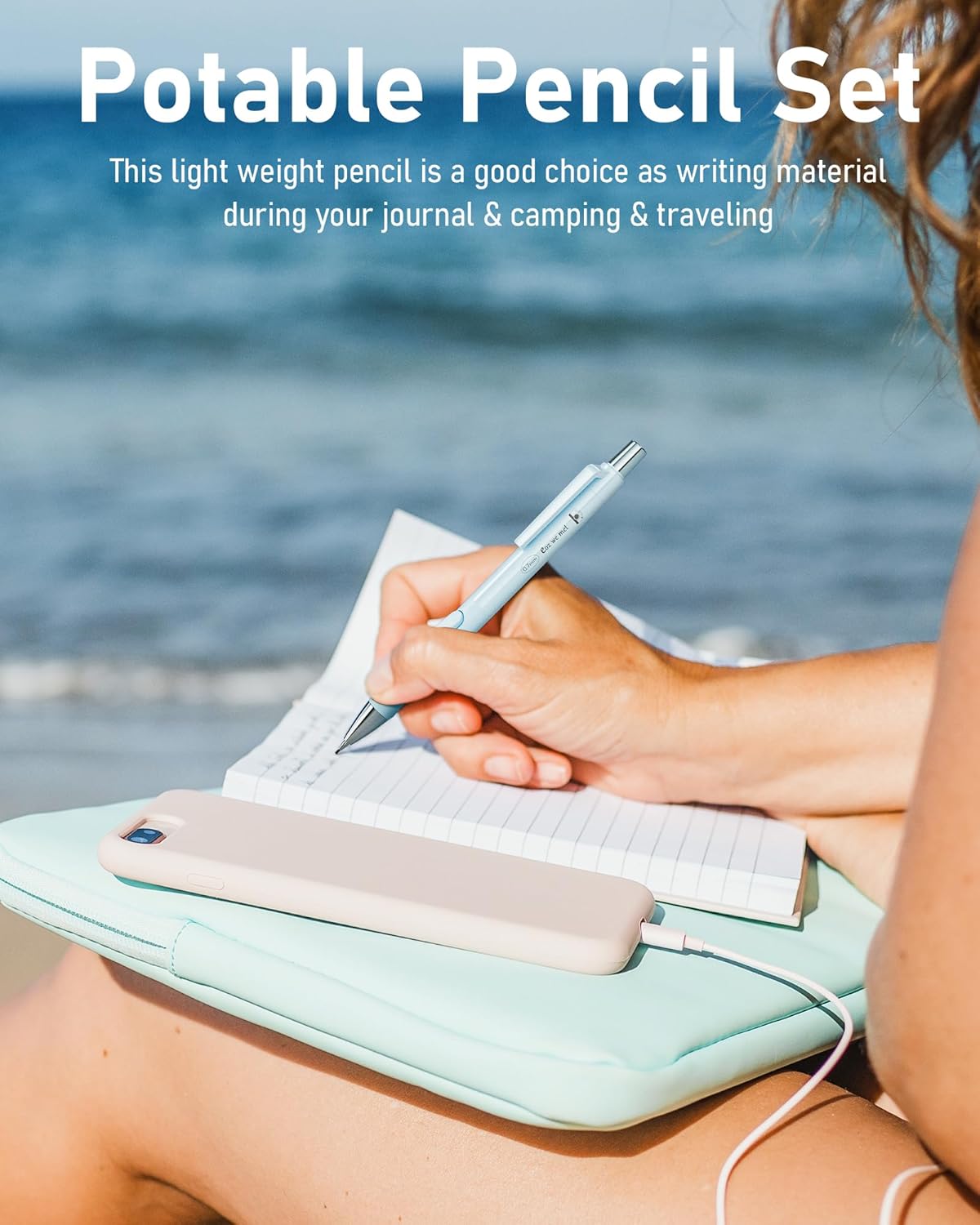 - 【Valued Mechanical Pencil Set 20PCS】: The exquisite mechanical pencil set come with 8pcs mechanical pencils in line size 0.5 mm & 0.7 mm (Purple / Green / Nude / Blue), 8 tubes of 0.5mm + 0.7mm lead refills (total 96 pcs), 2 pcs eraser, 20 pcs replaceable eraser refills, a plastic case.