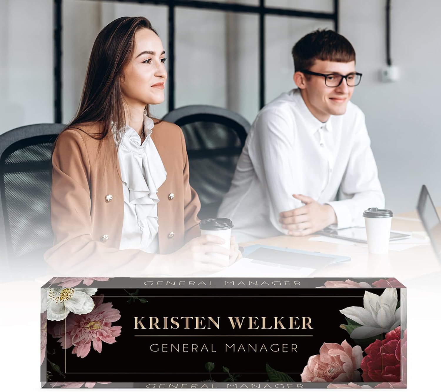 - šPremium Quality: The personalized name sign plates are made of high quality crystal clear acrylic blocks. This office nameplate will stand out on any desk! We use high-tech uv printers to print on quality clear acrylics glass so you can visualise your memories.