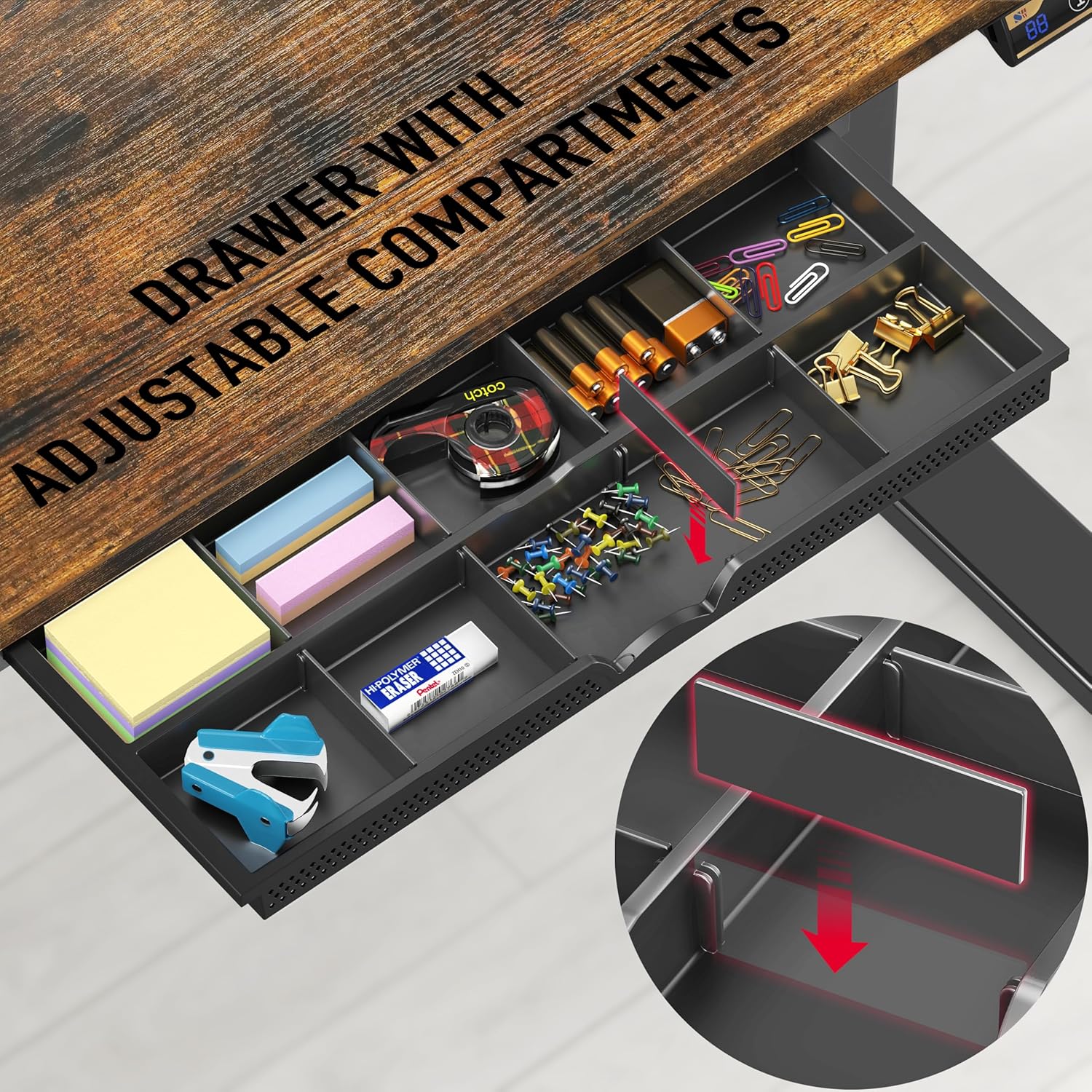 SHW 48-Inch Electric Height Adjustable Standing Desk with Drawer, Memory Preset and Cable Management Tray, Rustic Brown