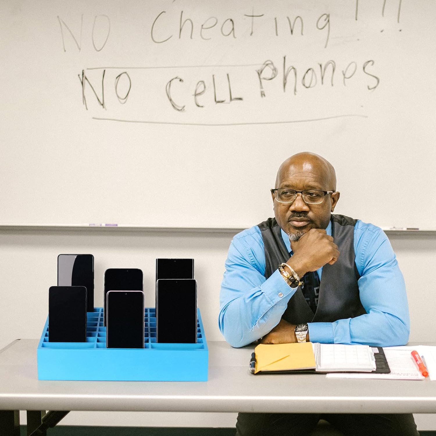 - ăCell Phone Holder for Classroomă Used as classroom phone storage box, perfectly to hold students cell phones in class. Let students focus more on learning, say goodbye to students playing with their phones in class and create an efficient classroom.