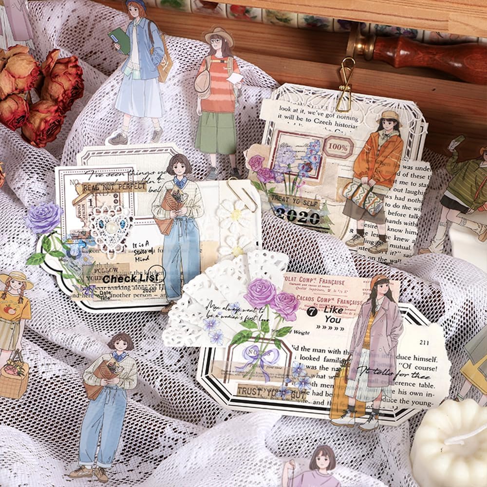 Alideco 120pcs Scrapbook Stickers Kawaii Fashion Girls People Journaling Scrapbooking Junk Journal Crafts Embelishment Decoration Diary Stickers (sijiyouni)