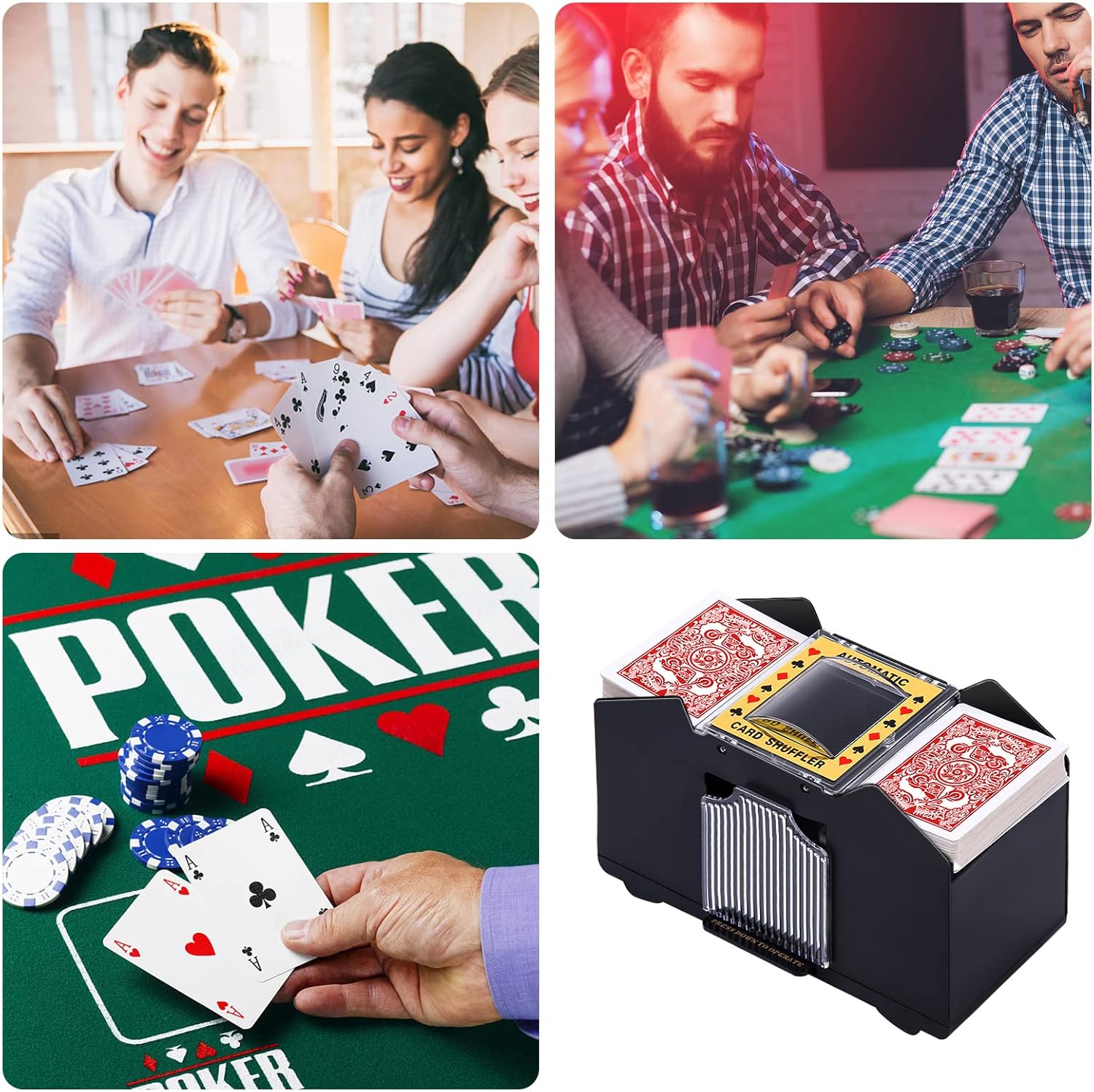 - 【More Convenient-Fully Automatic & Battery Operated】Just Want to play card more fun and convenient anywhere? Unniweei 1-4 deck automatic card shuffler is powered by 4 AA batteries (Not Included). Battery powered,shuffle fast,Shuffles up to 1-4 deck cards in seconds, our automatic card shuffler can release your hand, which can makes your casino card game more fun and convenient. Our card shuffler holds up to 1-4 standard decks of cards.