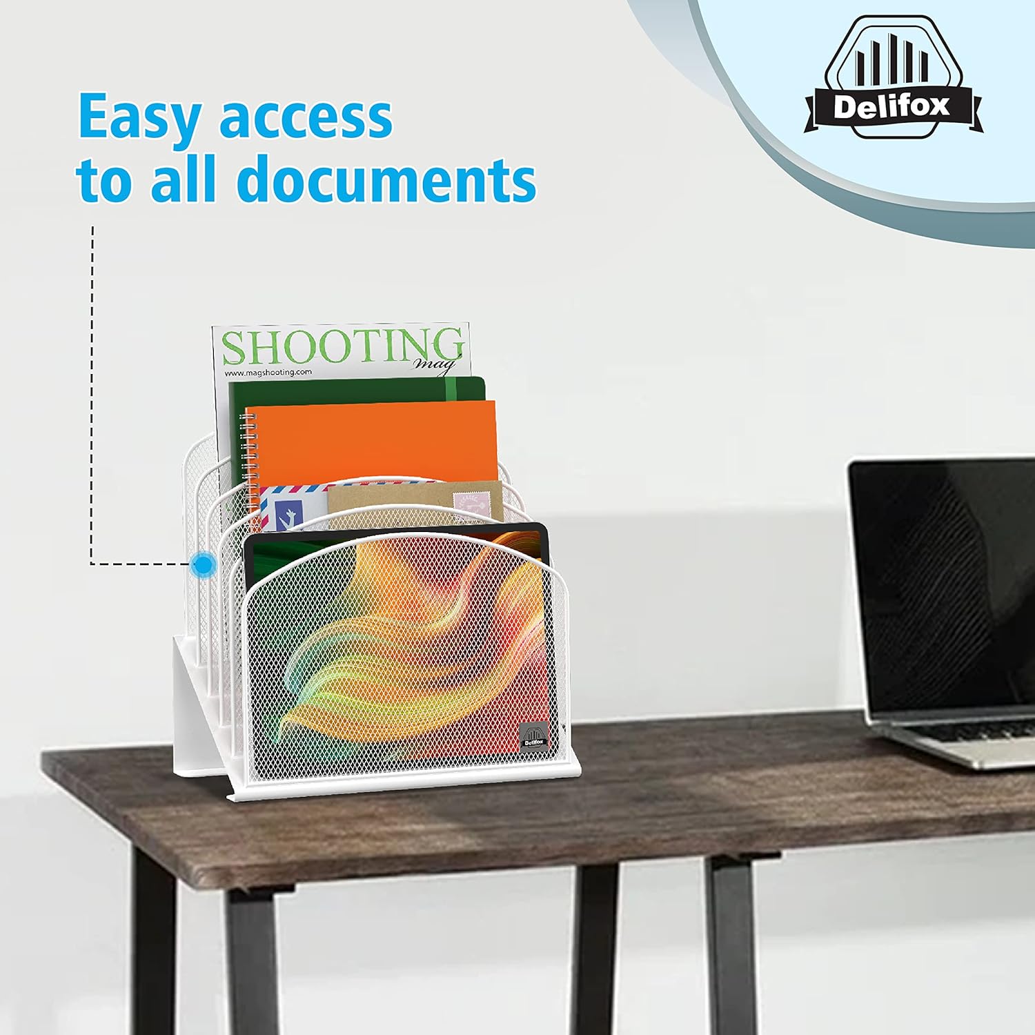 - ▶ SUFFICIENT SPACE FOR STORAGE. Delifox 5-compartment desktop file organizer is large enough to hold and classify many document or papers so as to eliminate worry of document run-off and keep track of files, folders, and other important papers