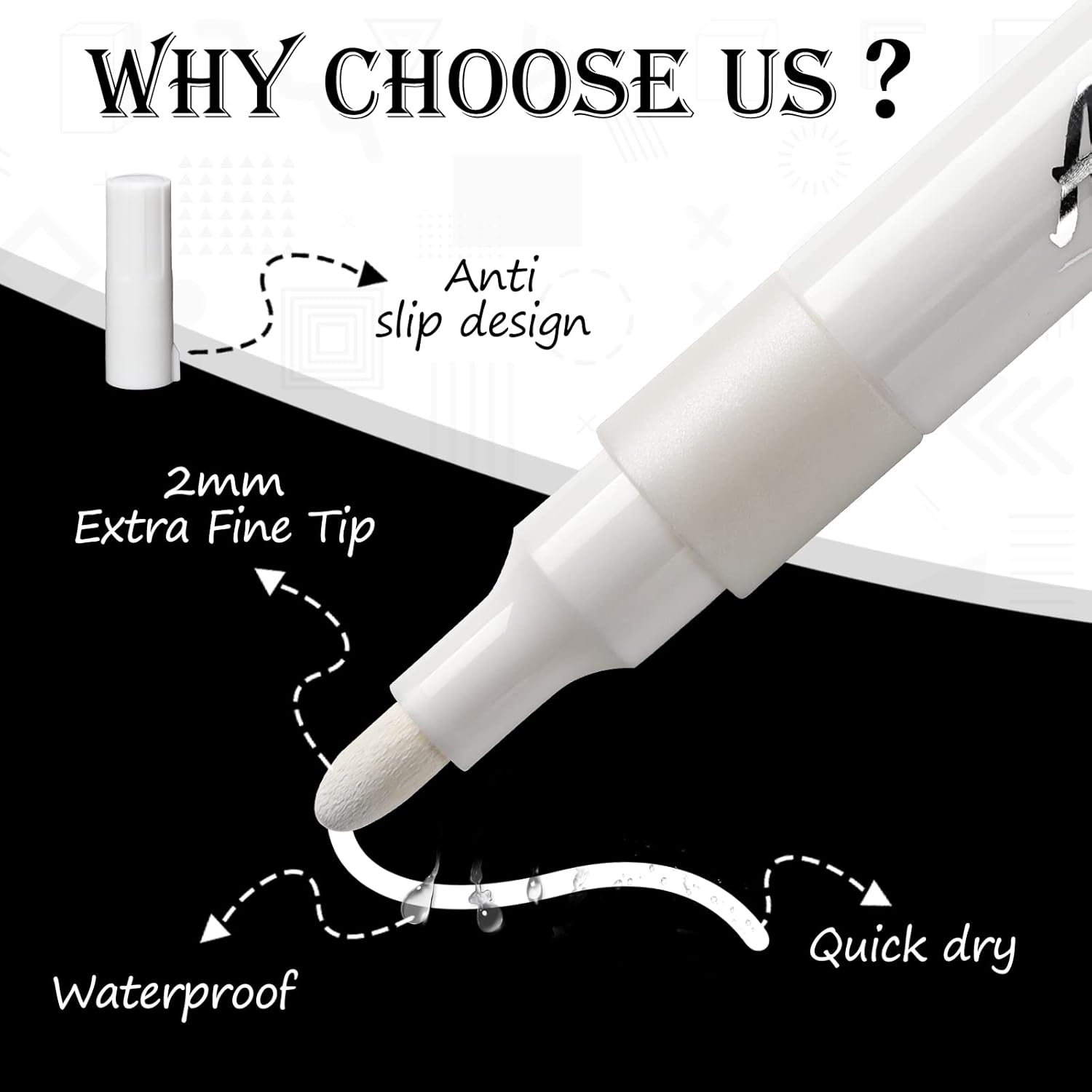 - ăPREMIUM QUALITY ăExtra Fine Tip white permanent marker paint pen use vibrant, fast-drying acrylic ink that produces a very durable, opaque and glossy finish on almost any surface.