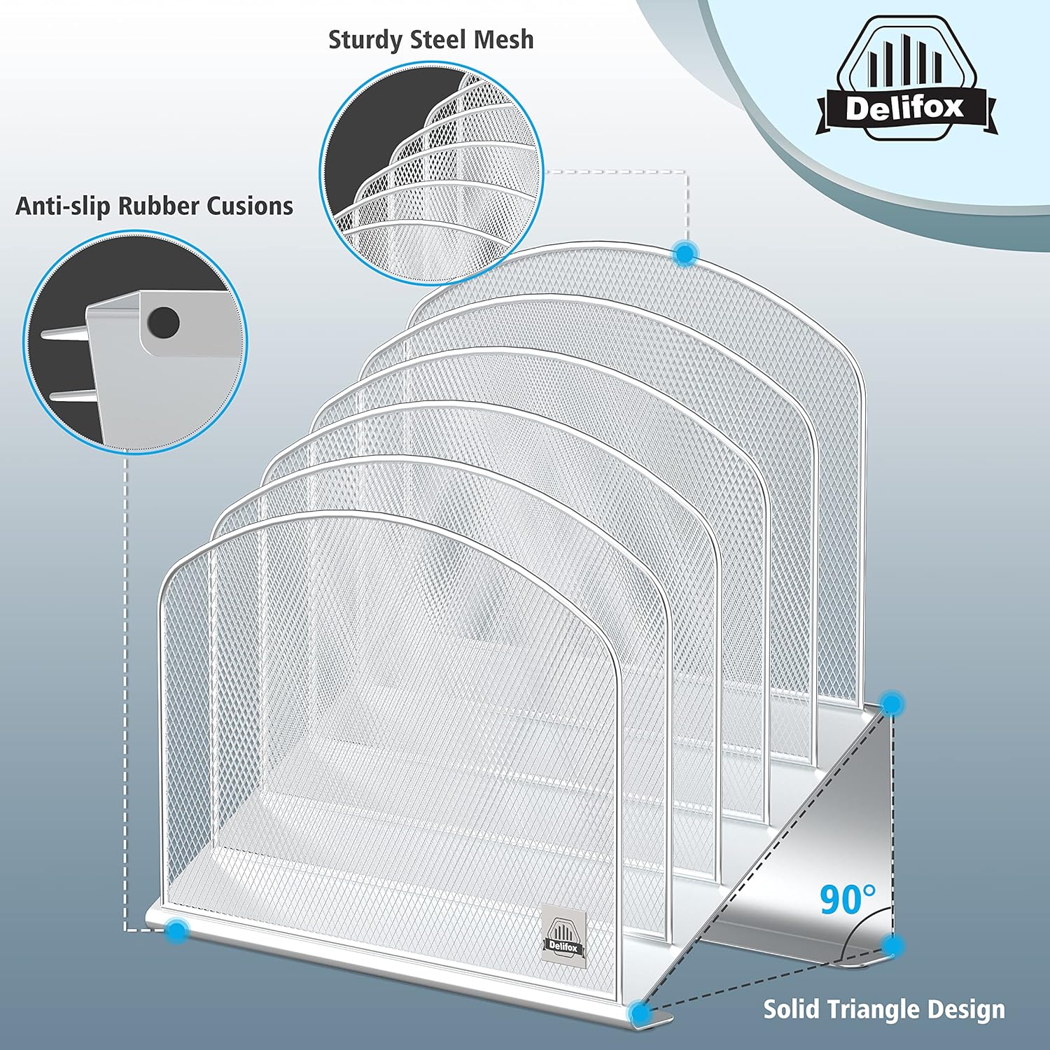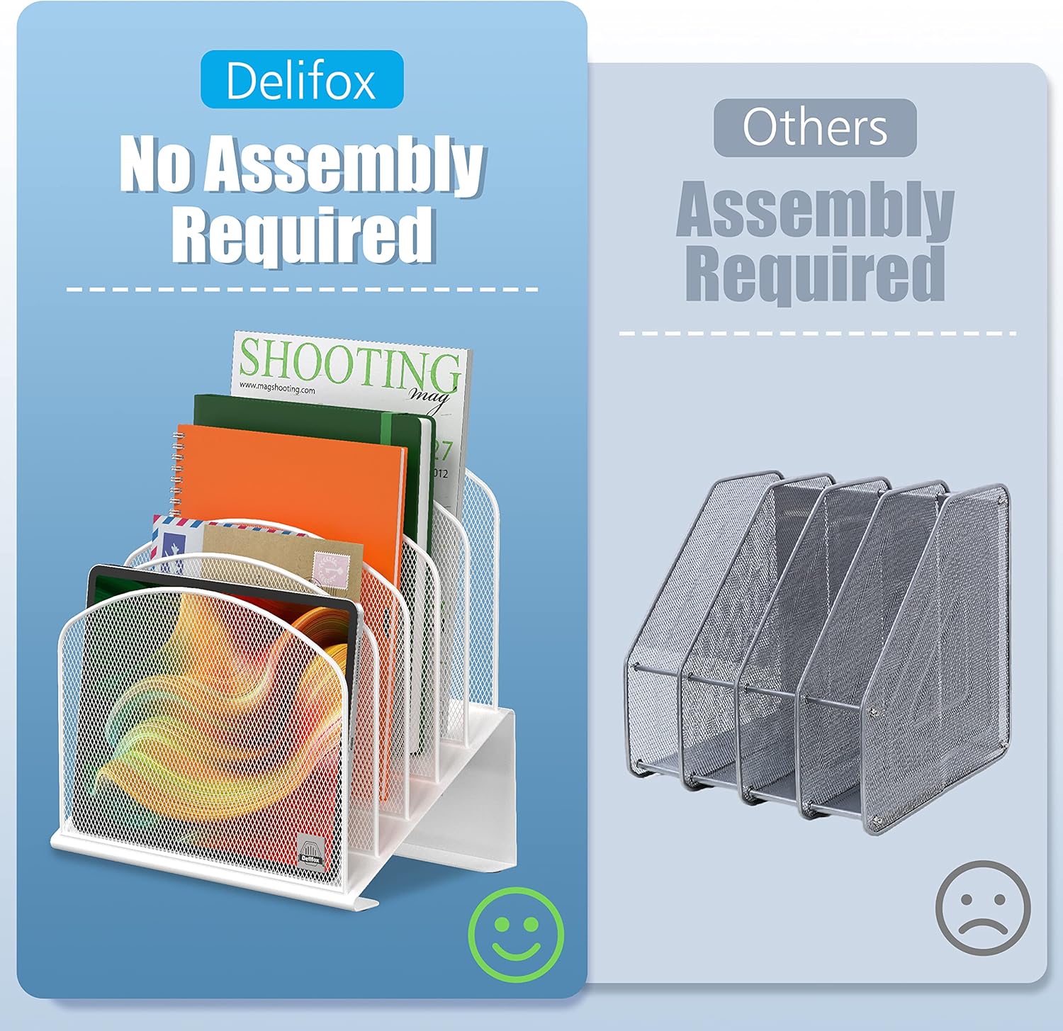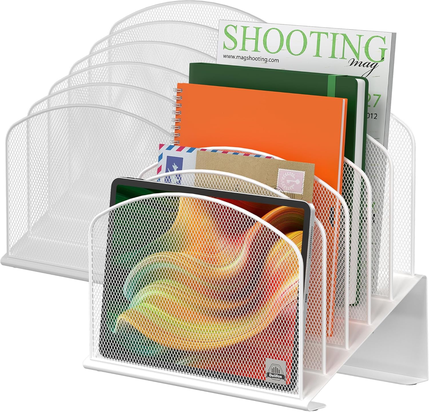 - ▶ SUFFICIENT SPACE FOR STORAGE. Delifox 5-compartment desktop file organizer is large enough to hold and classify many document or papers so as to eliminate worry of document run-off and keep track of files, folders, and other important papers