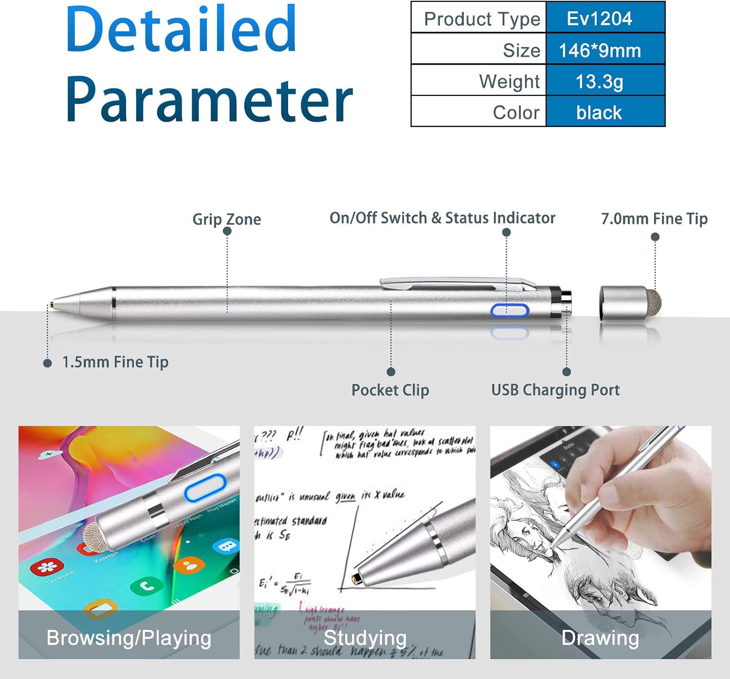 - ăAbout Active StylusăFine, Light, Brief stylish design with 146mm length, 13.3g weight, 1.5mm tip for smoothly writing and drawing. More sensitive with long time wearing at best performance.Best Stylus for artist,journalist,teacher and students etc.ăNo Bluetooth RequiredăThere is no bluetooth connection required for this stylus.If you are not aware of this, you might get confusion with other products.