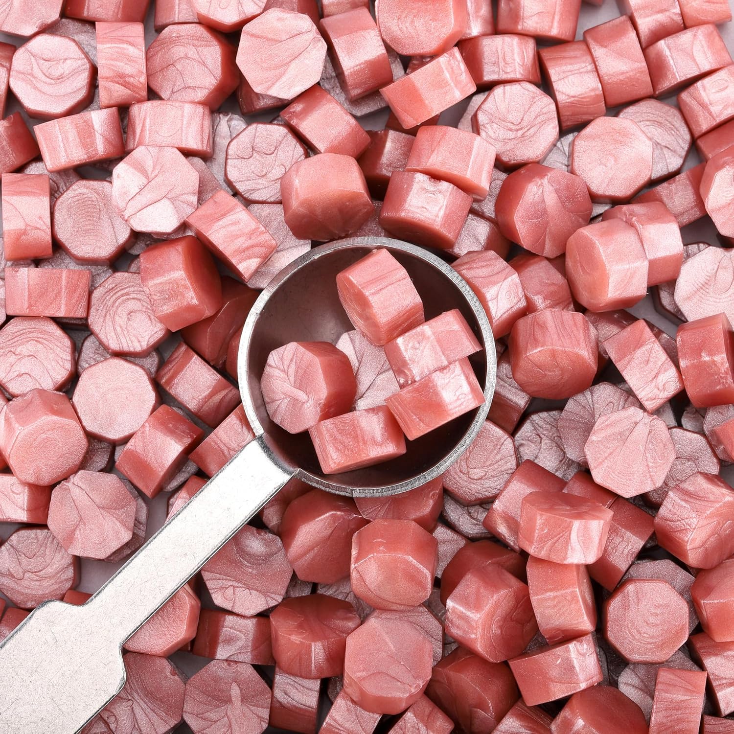 Yoption 300 Pieces Rose Gold Sealing Wax Beads, Vintage Octagon Wax Seal Beads with 4 Candles and 2 Wax Seal Melting Spoons for Wax Seal Stamp (Rose Gold)
