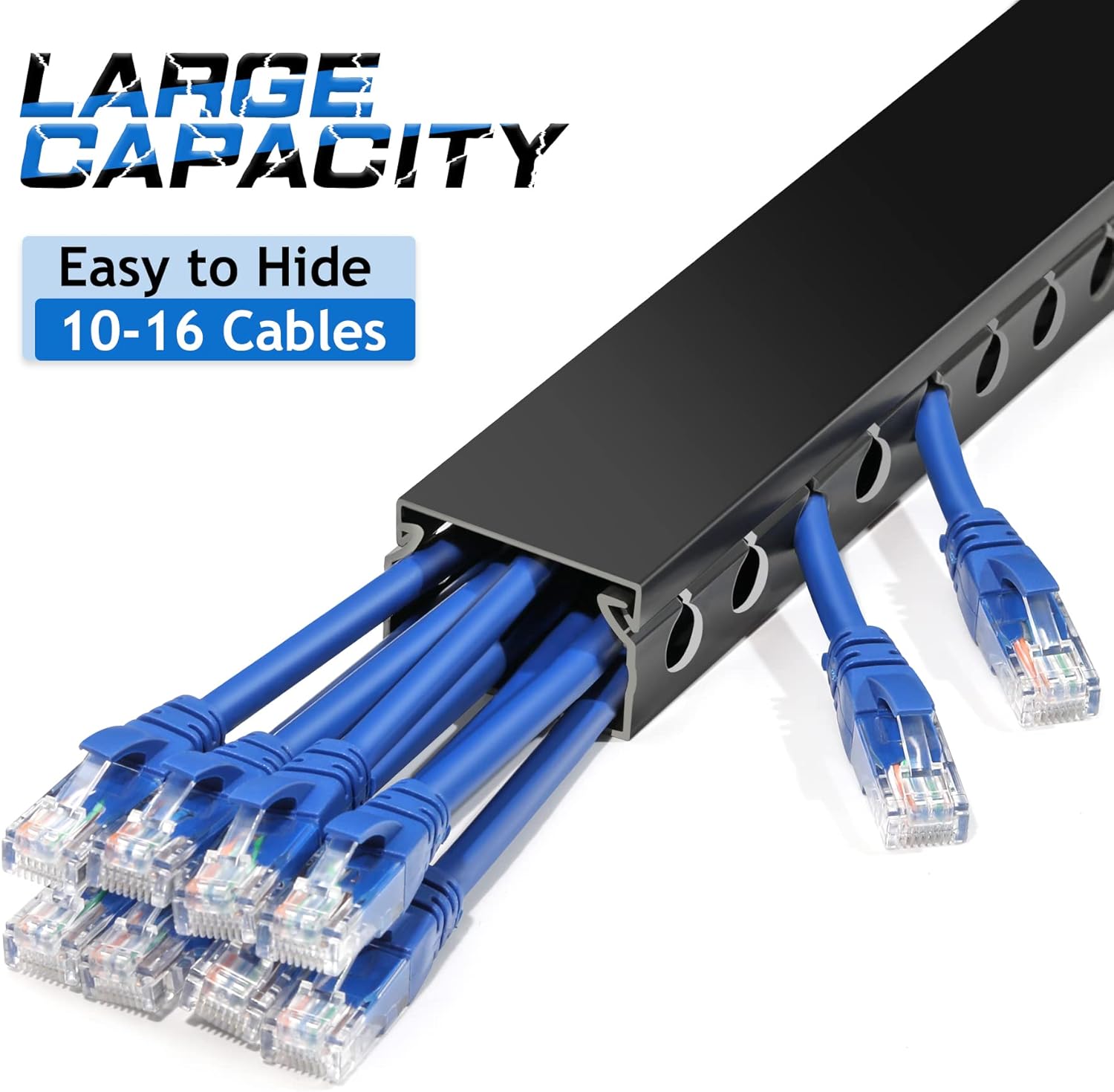- Easily Manage Your Network and Data Cables: Designed with round upgrade openings on both sidewalls (D = 0.4 inch), through which 3-prong extension cables can be run through. Its H0.98 in x W1.6 in large capacity can accommodate up to 16 cables (depending on their thickness). This cable raceways kit brings four 39in long cable management raceway (Total 156in), reduce the hassle of splicing