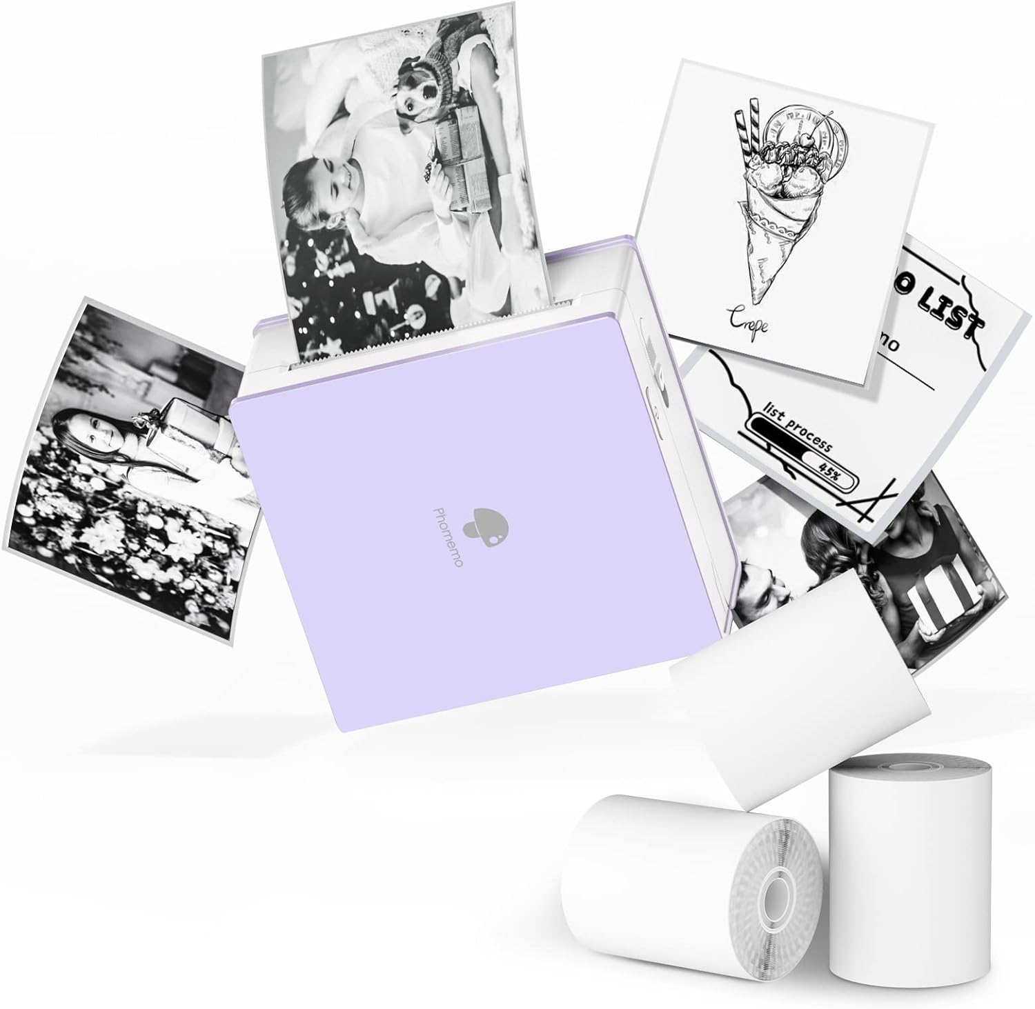 - Multi-Purpose Mini Printer- Phomemo M02 mini sticker printer is suitable for company business, work planner, office assistant, memo, study notes, shopping list, receipts, bookmarks, greeting cards, alphabet learning, coloring and so on. You can use it for DIY, study, fun, labels and create more