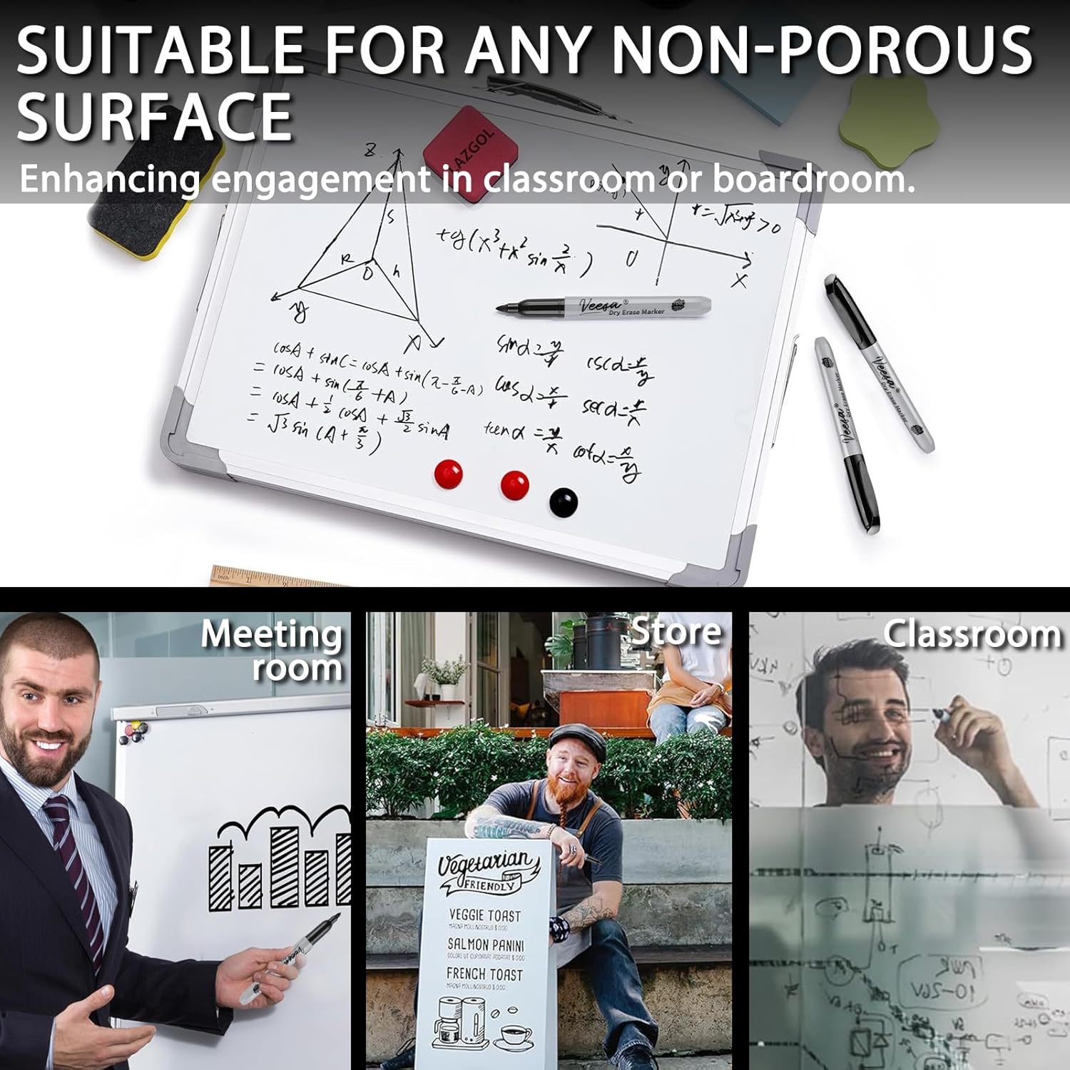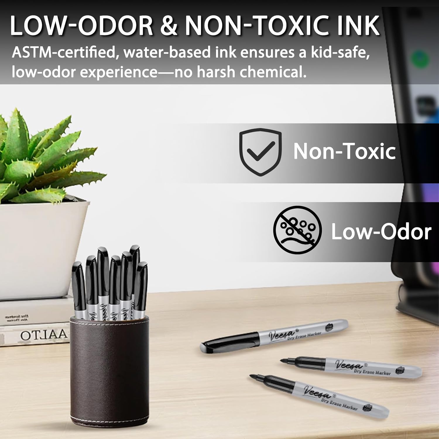 - Fine-tip Marker: Allows for precise writing and features a smooth and consistent writing experience, making it easy to write on whiteboards and most non-porous surfaces