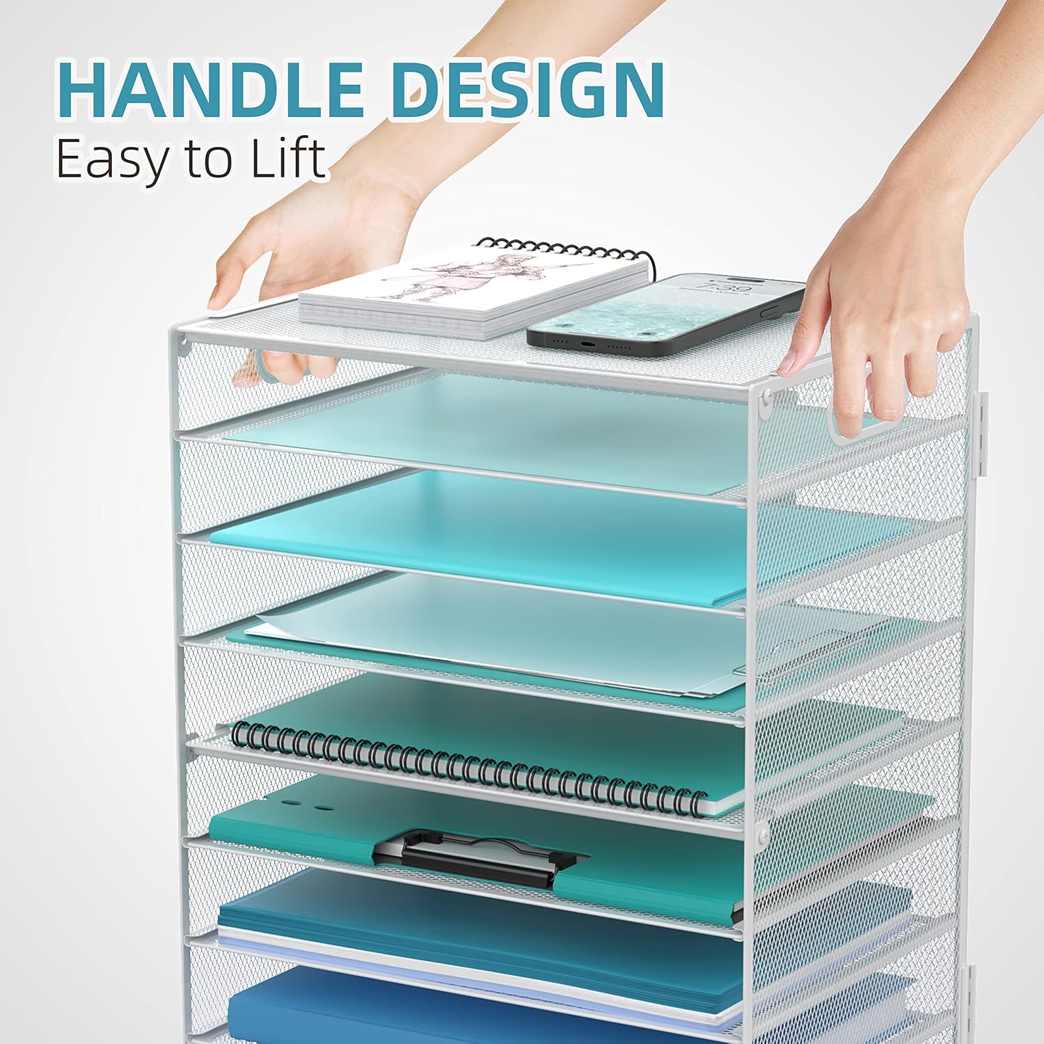 DALTACK 9-Tier Paper Letter Tray Desk Organizer with Handles, Mesh File Holder Organization, Paper Sorter Desk Organizer for Office Home School, White