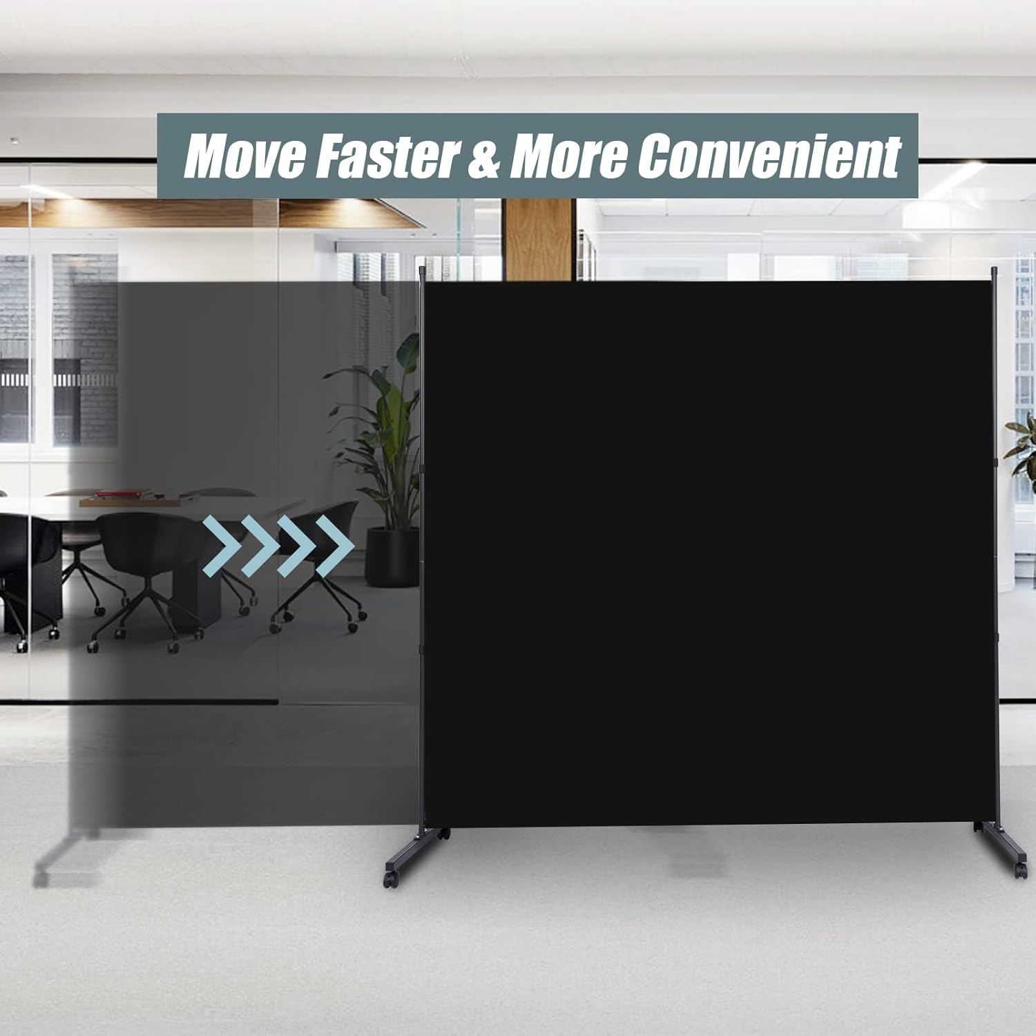 Room Divider Single Panel Privacy Screen W/Wheels, 71'' Wide Portable Room Divider Screen, Upgrade Fabric Wall Divider for Room Separation, Freestanding Partition Room Dividers for Home Office Studio