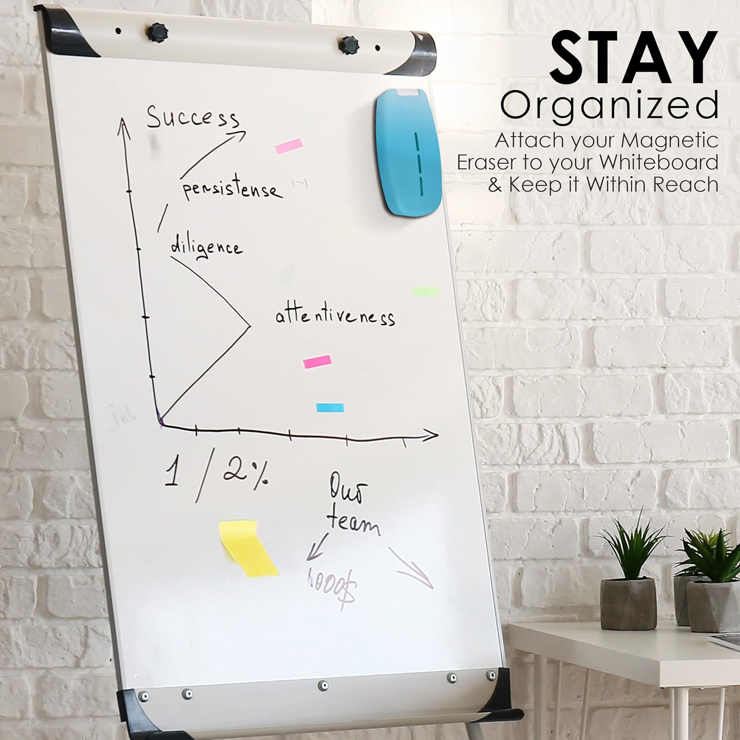 - Back To School Cleaning Essential: Our teal magnetic dry erase board eraser with spray cleaner is perfect for the new school year. Easily wipes away stubborn ink and chalk marks on any magnetic dry erase board or magnetic chalkboard