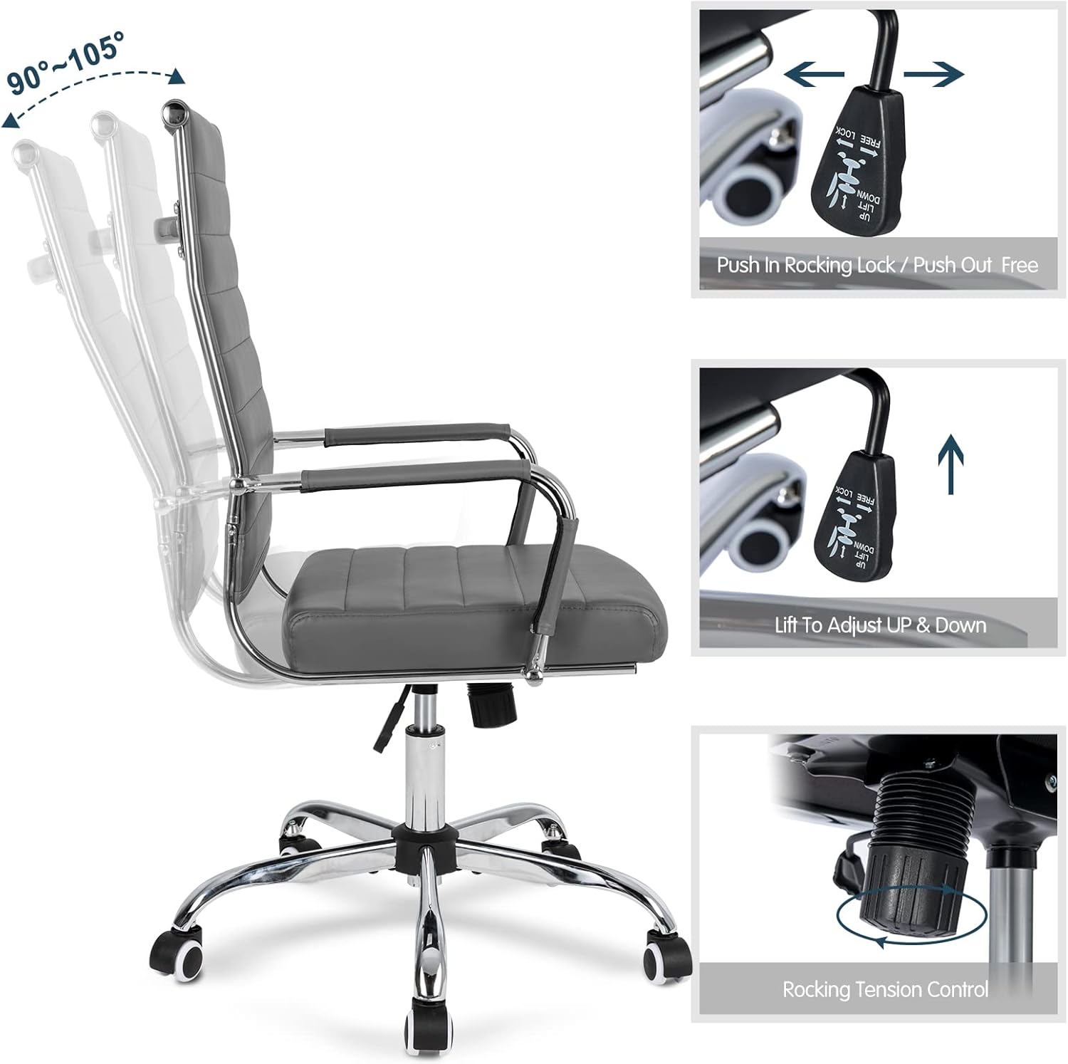 Home Office Chair Ribbed, Modern Leather Conference Room Chairs, Ergonomic Office Desk Chair, High Back Executive Computer Chair, Adjustable Swivel Chair with Arms (Grey)
