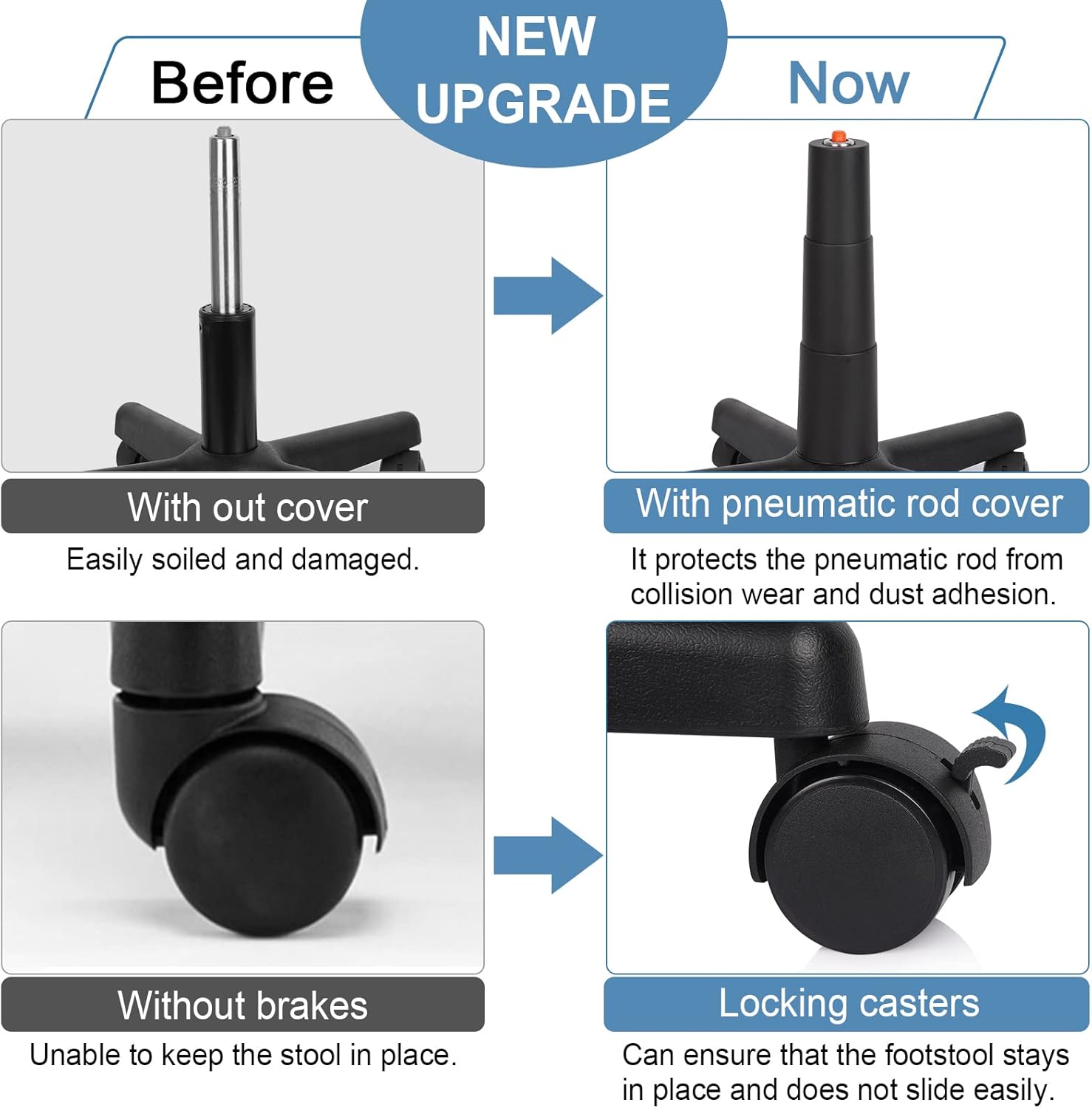 - [360° Rotating Wheels] The lockable casters keep the footrest stool in place and also slide at will to make work more efficient.