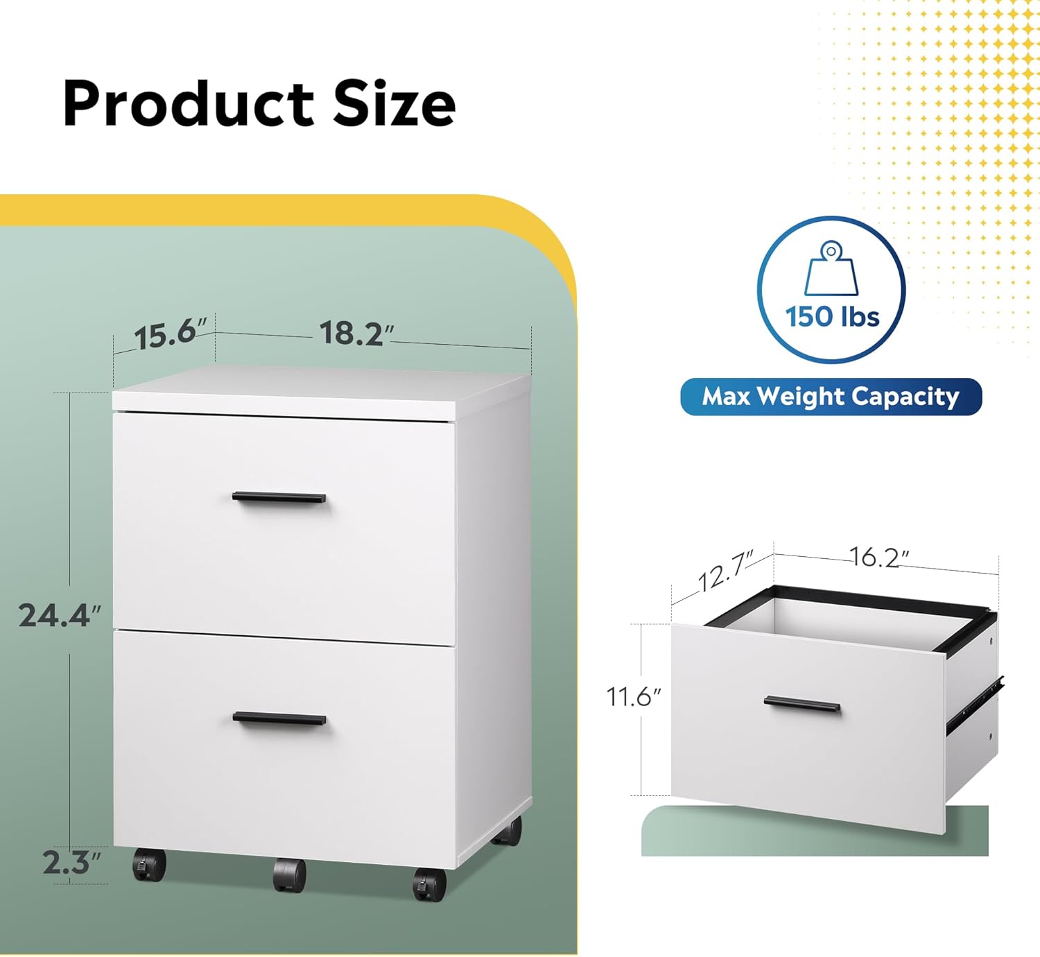 - 【Stylish and Functional】The DEVAISE 2-Drawer File Cabinet features sleek lines and a modern look, fitting perfectly in various home office environments. It enhances room appeal while providing practical use. Place it under desk and easily access files with the convenient drawer handles. Dimensions: 18.2"W x 15.6"D x 26.7"H (including wheels).