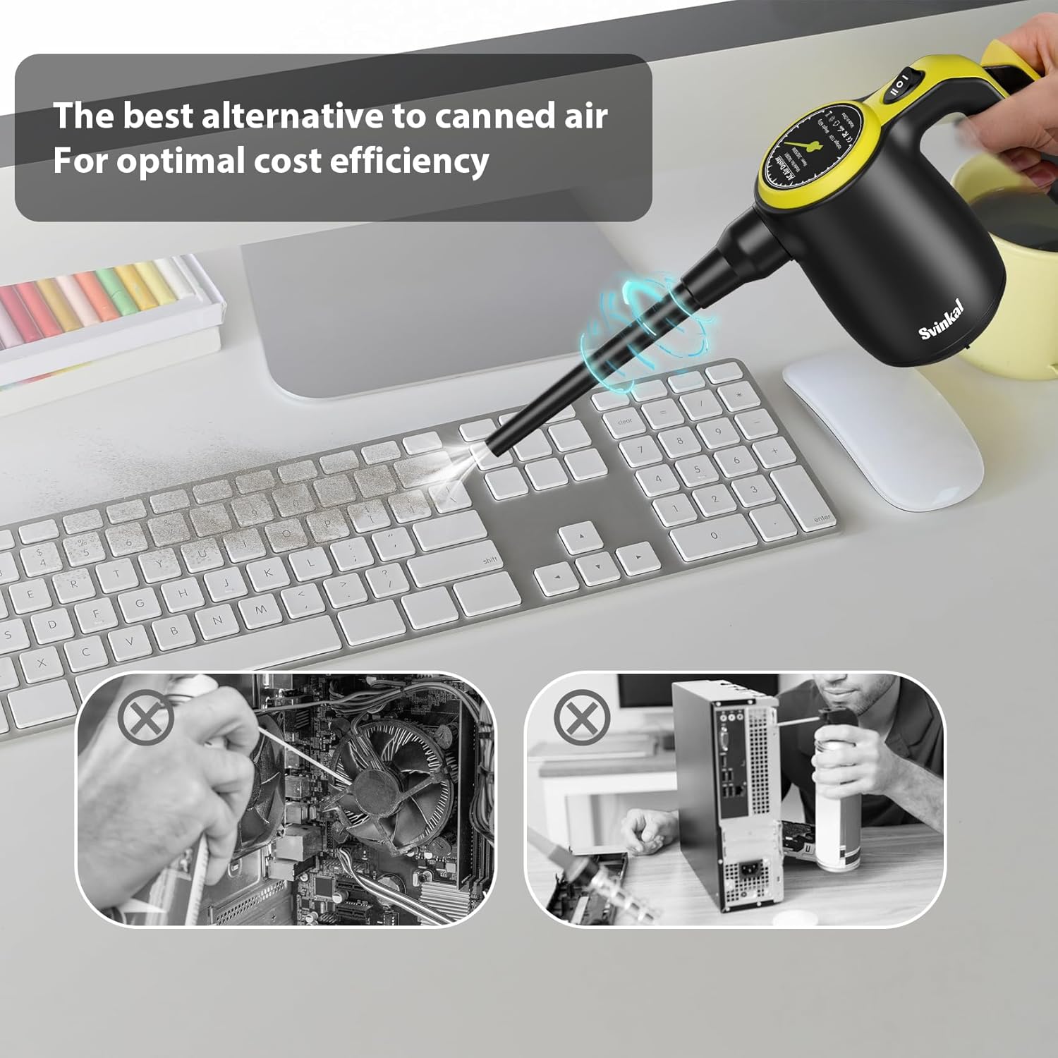 - Alternative To Canned Air💈: Inexpensive and Non-Toxic, You Save Money, Gas, Water and The Environment. It's A One-Time Investment, So You'll Never Need To Buy Canned Air Again or Worry About Running Out Of Power.