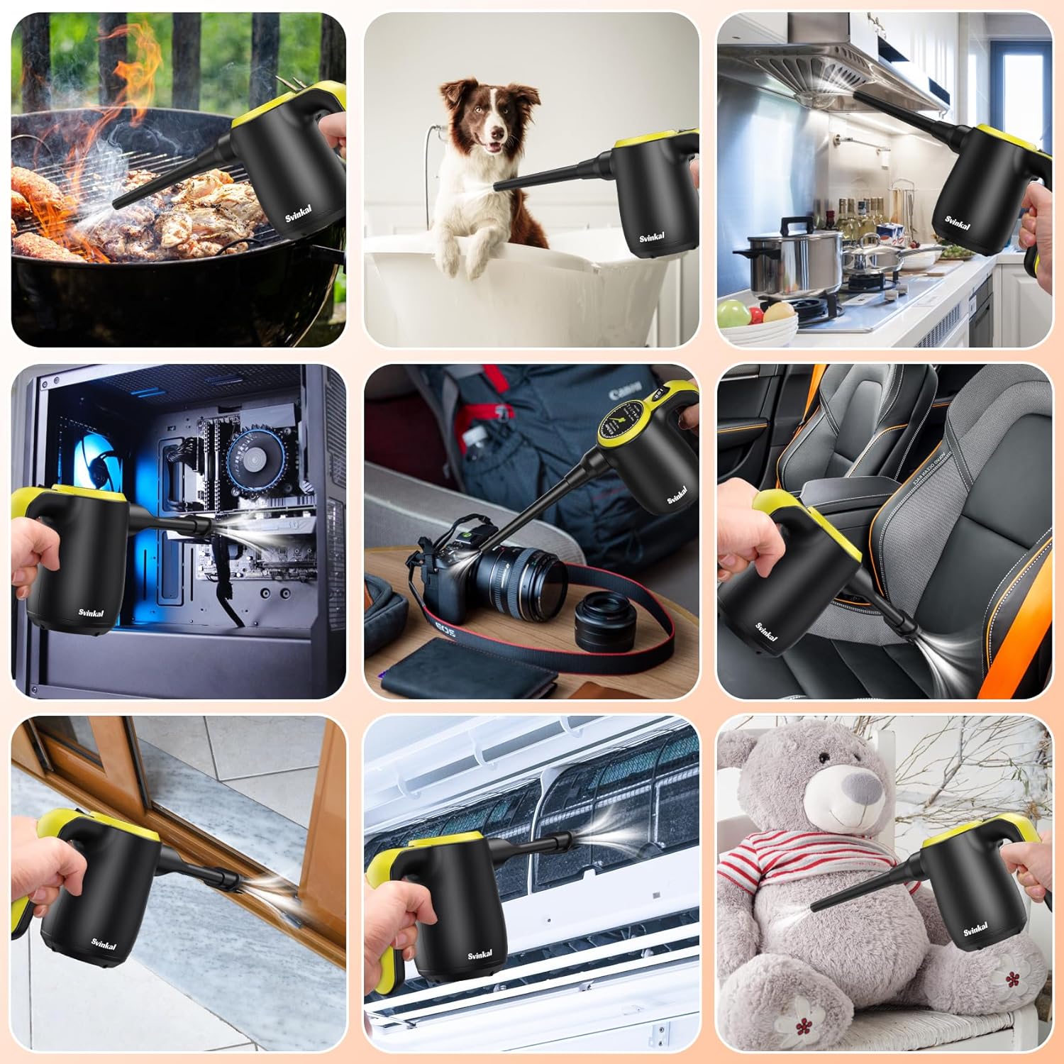 - Compressed Air Duster🌀: Provides A Constant Supply of Fresh, High-Pressure Air to Quickly Remove Stubborn Dust and Debris. Ideal for Cleaning Electronic Equipment Such As Computers, Keyboards, Fans, Tvs and Servers As Well As Filters, Radiators, Sofas and Floors.