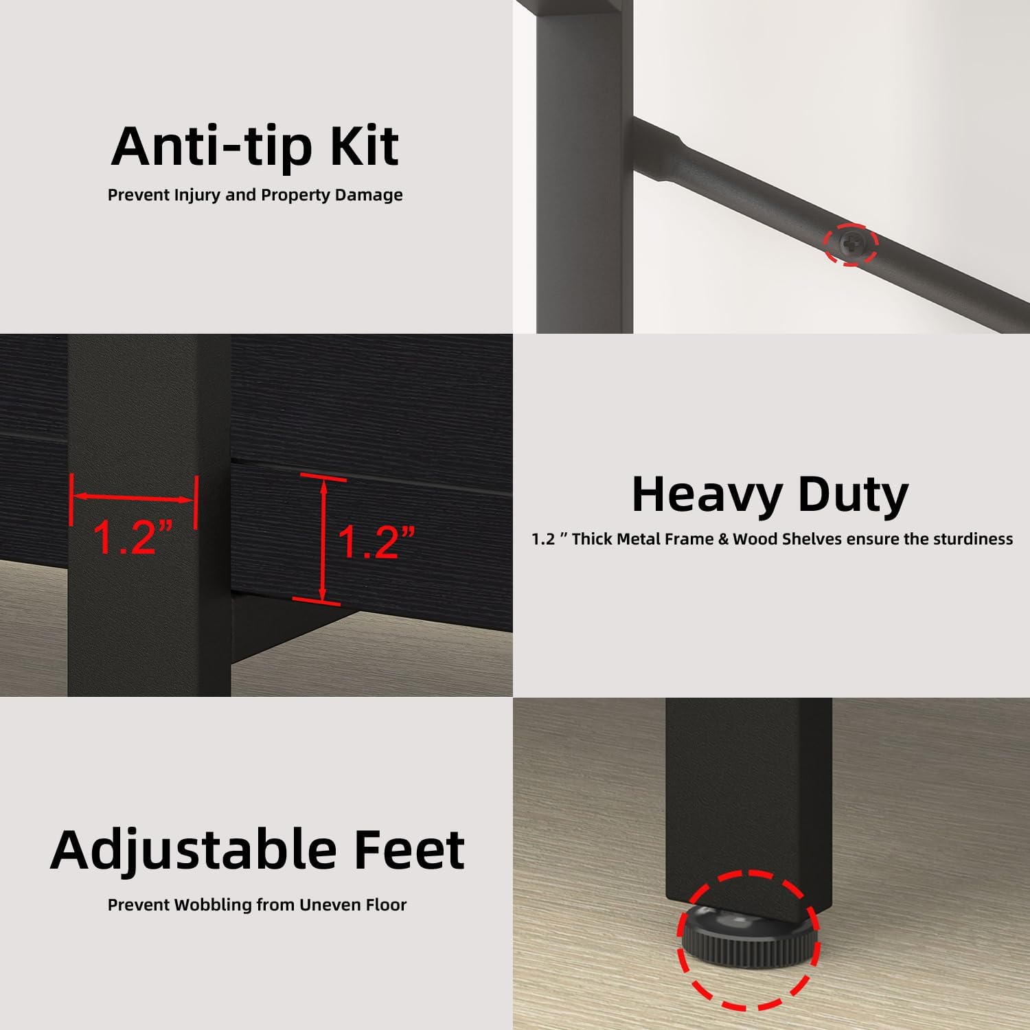 - ăAnti-tip Kits & Easy Assembly ăďźPlease remember to install the anti-tip kits on the wall for better stability and less unexpected injuries. With smart design and all tools included, you never get stuck with the hard assembly jobs for the black bookcases and book shelves 5 shelf.