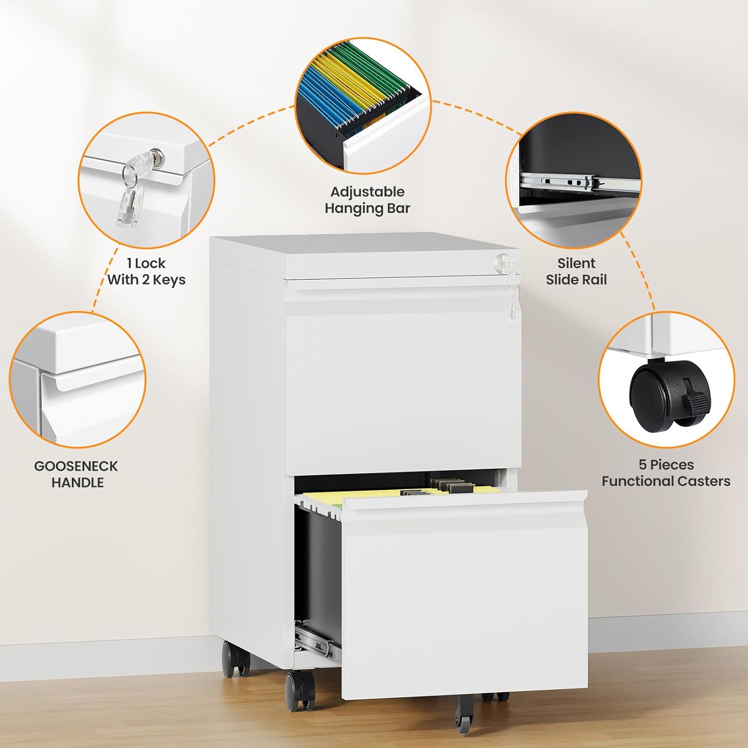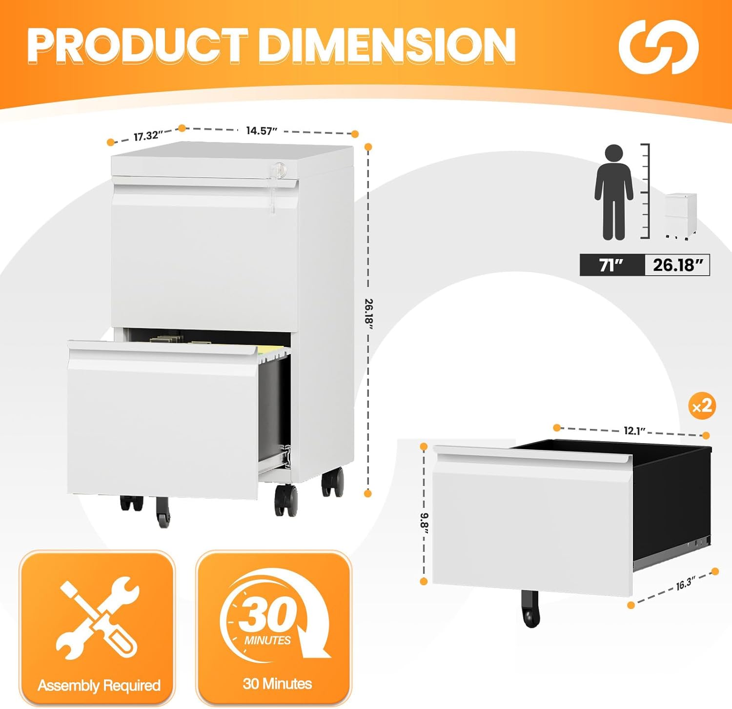 - 【Rolling File Cabinet with Lock】:AFAIF 2 drawer file cabinet has one lock equipped with two keys, which can help you keep your valuables and documents safe. It can not only provide spacious storage space to keep files, papers, office machines, and supplies organized, but also an attractive decor for your home and office.