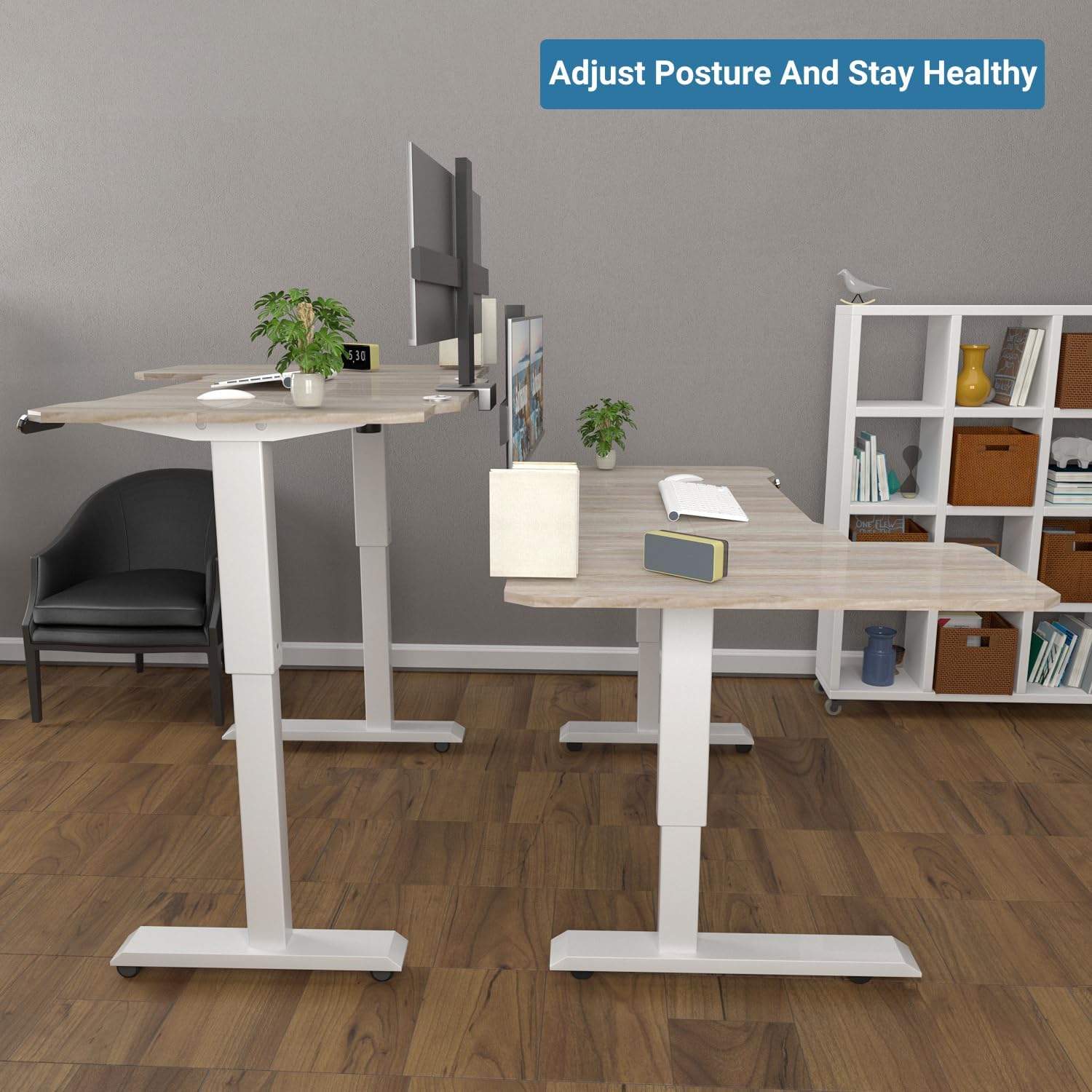 Electric Height Adjustable Standing Desk, Sit - Stand Desk for Work or Home Office Push Button Memory Settings Splice Board (Light Oak, 59x24)