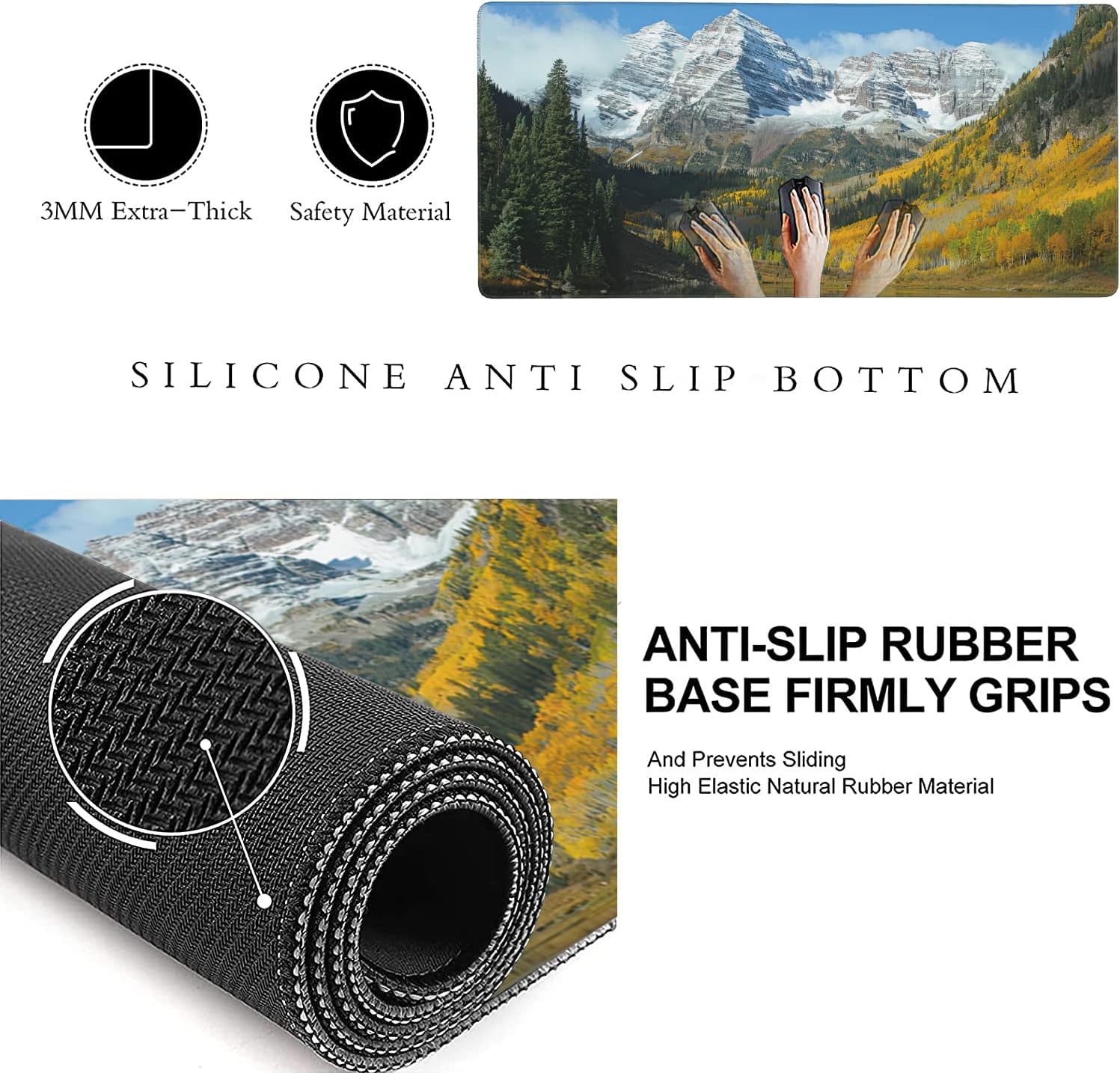 Maroon Bells Peaks and Golden Aspens Extended Gaming Mouse Pad Large Desk Mat with Non-Slip Rubber Base and Stitched Edges,Keyboard Mouse Mat Desk Pad for Work,Game,Office,Home 35.4 * 15.7 Inch
