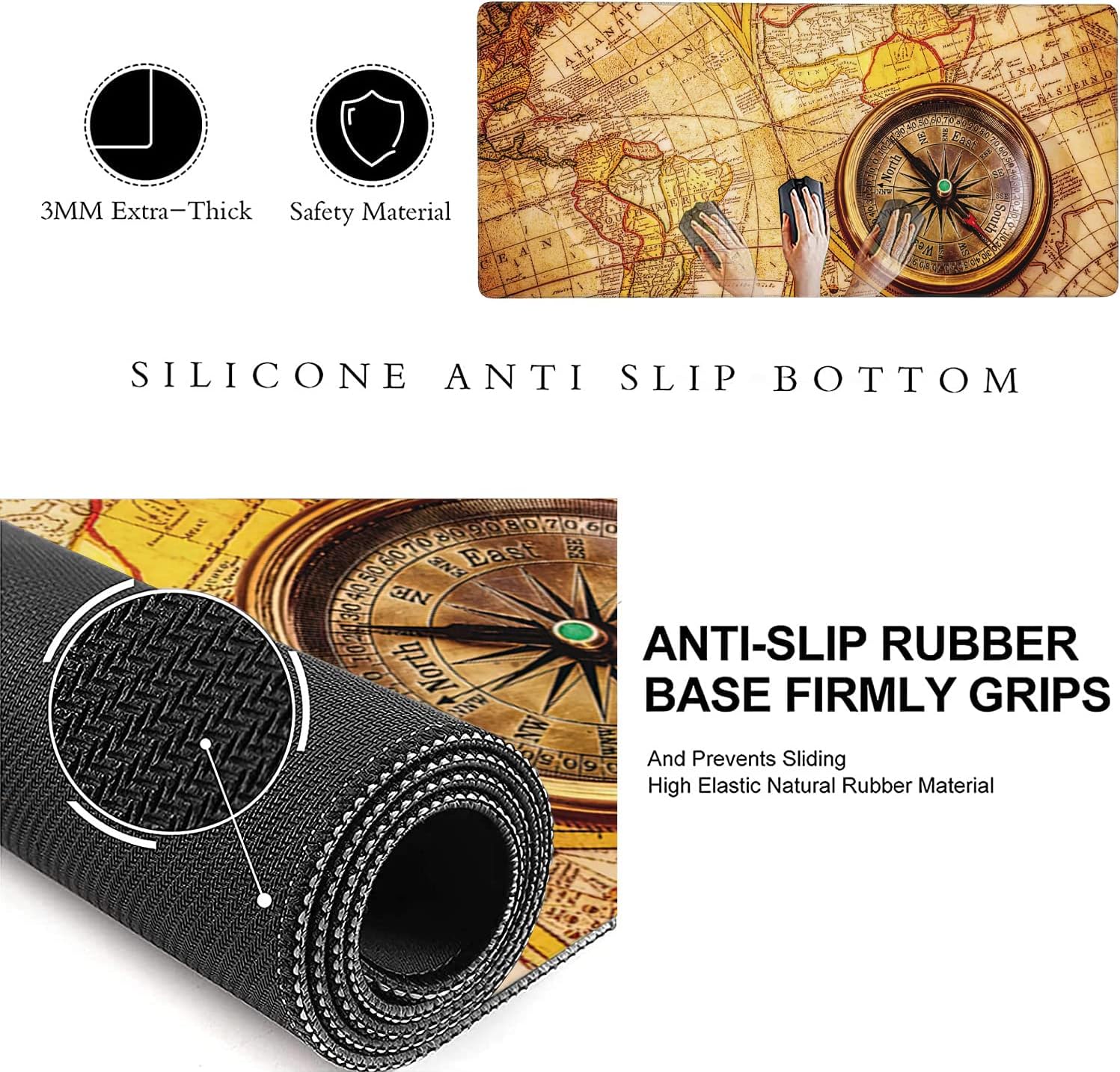 Vintage Compass Lies on Ancient World Map Extended Gaming Mouse Pad Large Desk Mat with Non-Slip Rubber Base and Stitched Edges,Keyboard Mouse Mat Desk Pad for Work,Game,Office,Home 35.4 * 15.7 Inch