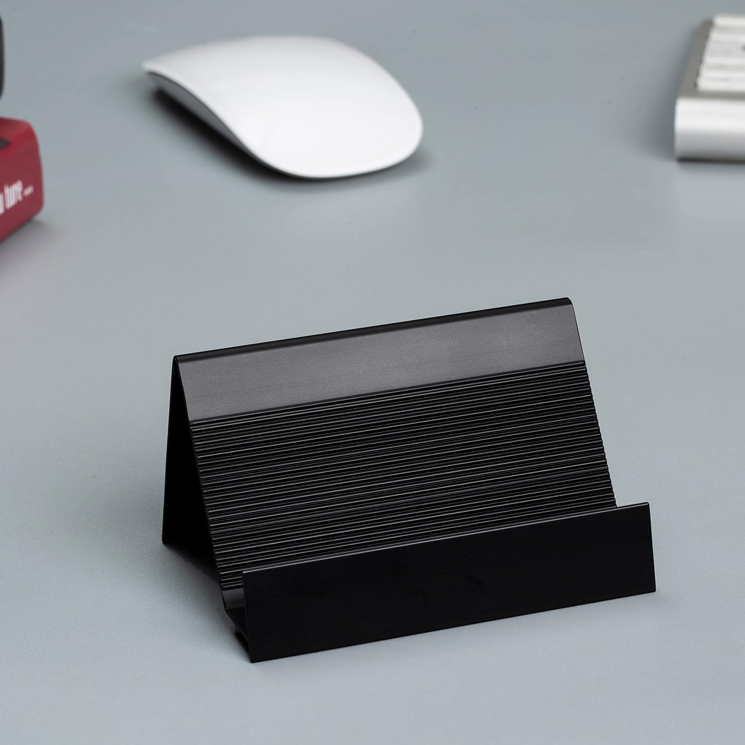 Business Card Holder Aluminum Business Card Display Stand, Desktop Black Business Card Holders for Exhibition, Home and Office, Fits 35-50 Business Cards 1 Pack