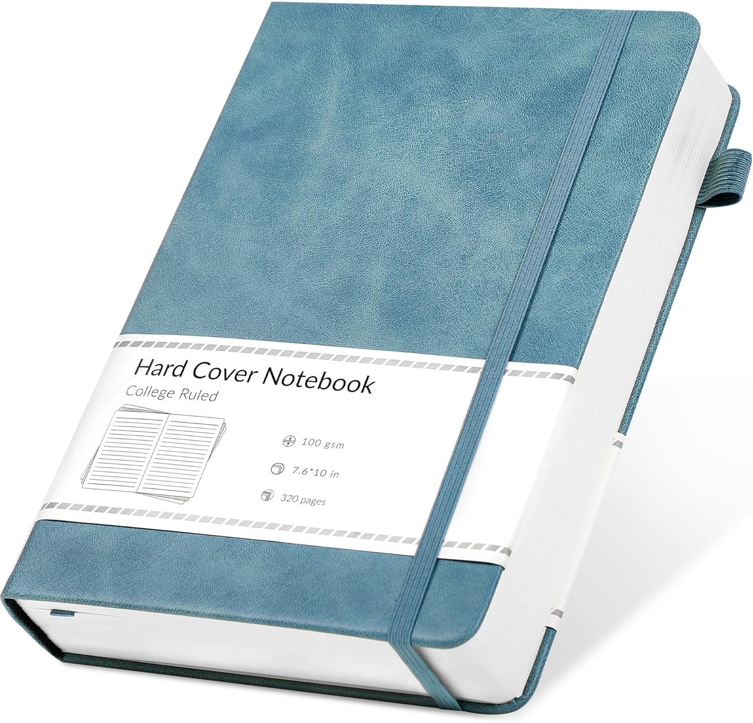 CAGIE Lined Journal Notebook, 320 Pages College Ruled Notebook, 100 Gsm Paper Thick Journal, B5 Hardcover Leather Journals for Writing Women Men, 7.6x10 In, Blue