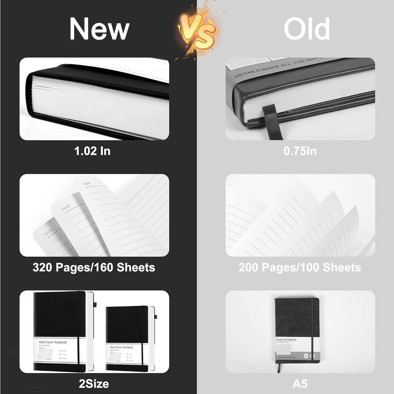 - 320 Pages Paper - Lined journal with 320 pages provides you with enough writing space. B5 notebook with 100gsm paper, thicker than normal paper, will not cause bleeding, ghosting or smudging and is suitable for most types of pens.