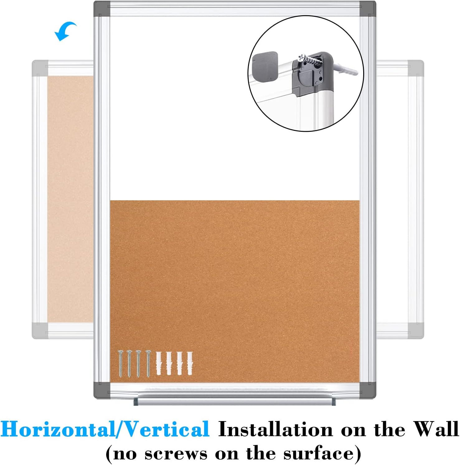 WALGLASS Combination Magnetic Whiteboard & Corkboard, 24"x18" Combo for School, Office & Home, Dry Erase Board with Removable Tray, Pins, Eraser, Markers & Magnets