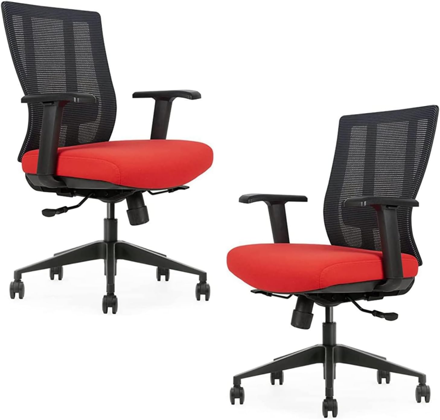 Ergonomic Office Chair - Breathable MESH - Back Adjustable Lumbar Support with 3-D ARMRESTS TILT Function and 360-DEGREE Swivel Wheels Comfortable Wide SEAT - Home Office Chair (Tangerine) Pack of 2
