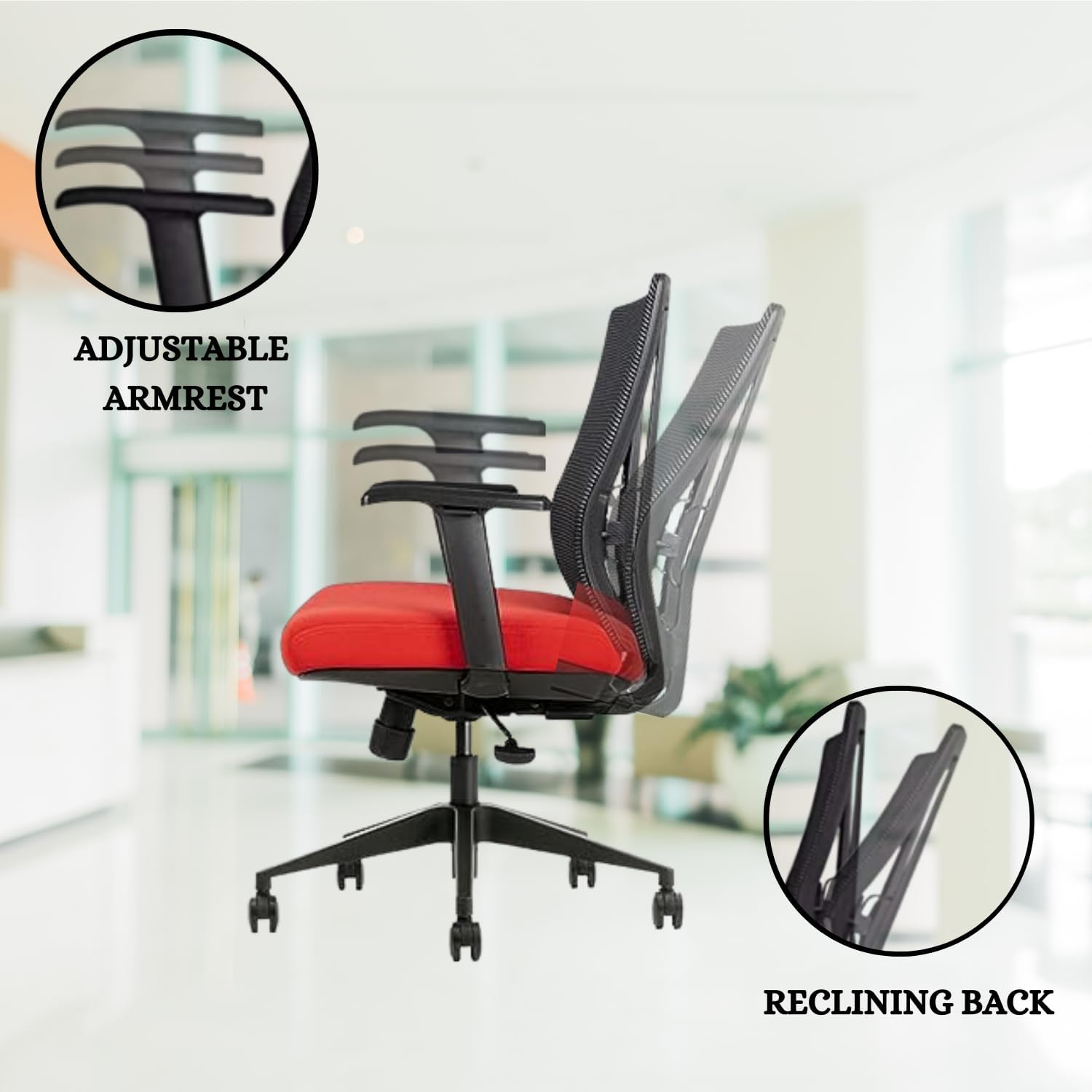 - โ ๐๐๐-๐๐๐ ๐ซ๐๐ ๐๐ฐ๐ข๐ฏ๐๐ฅ ๐๐๐ฌ๐ ๐ฐ๐ข๐ญ๐ก ๐๐ฆ๐จ๐จ๐ญ๐ก-๐๐ฅ๐ข๐๐ ๐๐ก๐๐๐ฅ๐ฌ: The chair is built on a sturdy base that allows for a full 360-degree swivel, enabling you to easily rotate and reach different areas of your workspace without straining. The smooth-glide wheels ensure effortless movement across various floor surfaces, whether carpeted or hard floors, promoting mobility and convenience during use. The stability of the base also ensures secure positioning when seated, providing stability and safety. In terms of design integration, the swivel base complements the chair's overall aesthetic and functionality seamlessly.