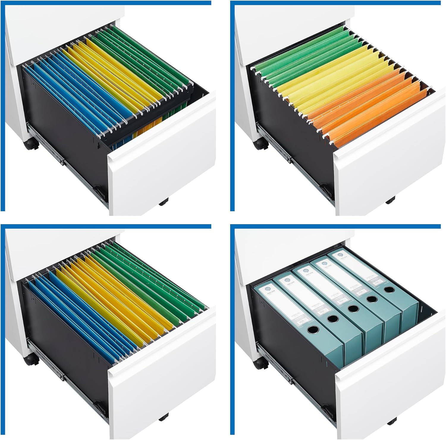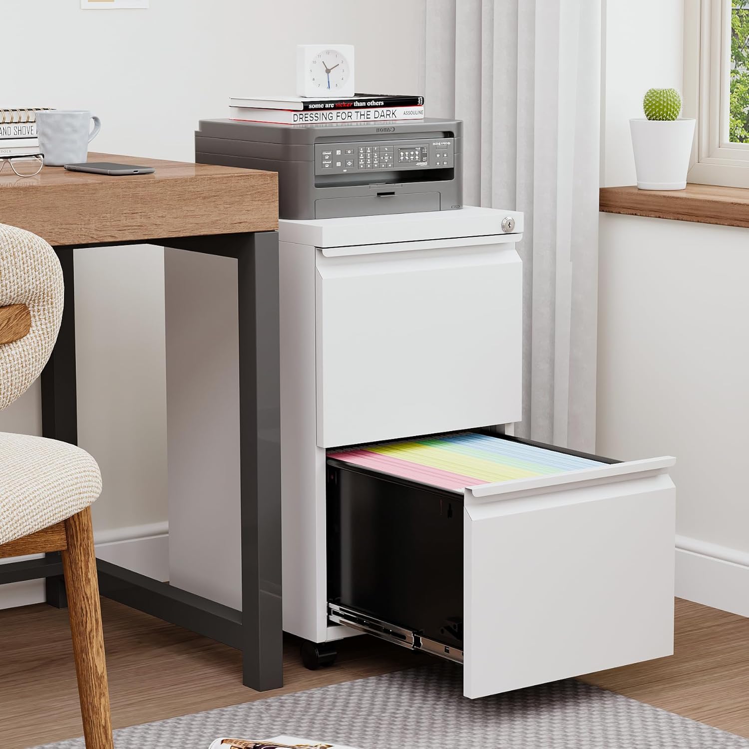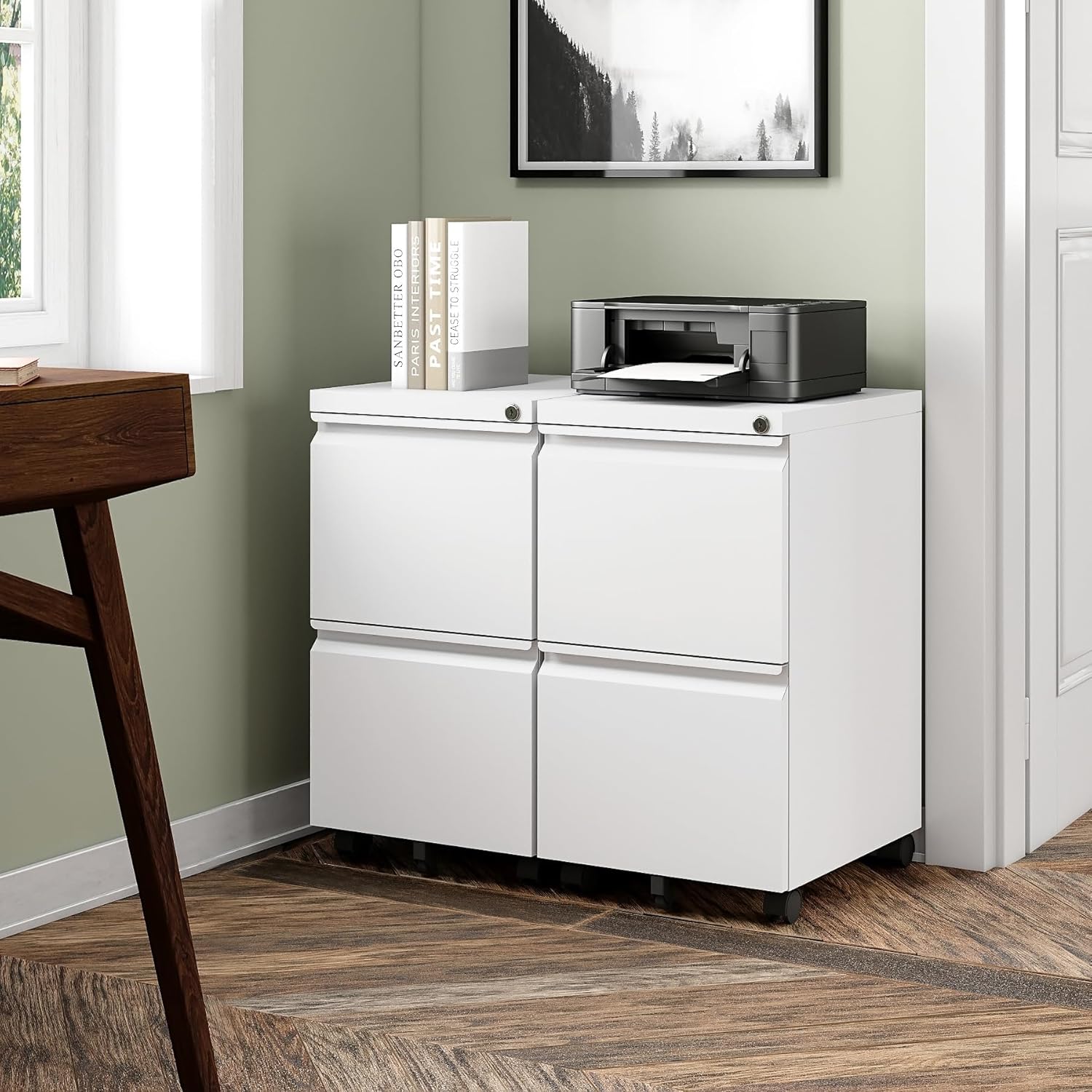 - Optimize your work space: The file cabinet adopts the structure of 2 drawers, 1+1 space combination. Small and large file cabinets can be organized and stored, making your office space more comfortable.