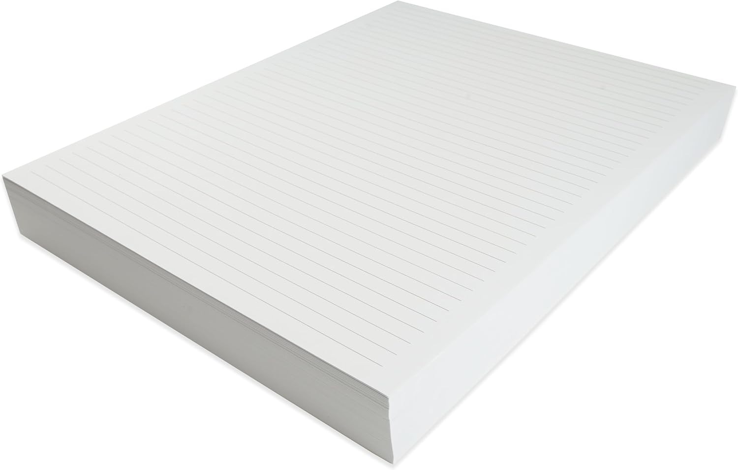 - Paper Stats: Letter Size Paper (8.5 inch x 11 inch), White Paper, Lines 7mm spacing, lines printed on both sides.