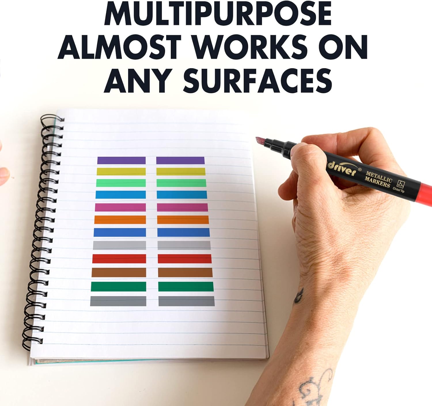 cloudriver Metallic Markers, 24 Count, 12 Assorted Colors, Fine and Chisel Tip, Metallic Marker Pens For Black Paper, Art Rock Painting, Easter Egg, Card Making, Scrapbook Crafts