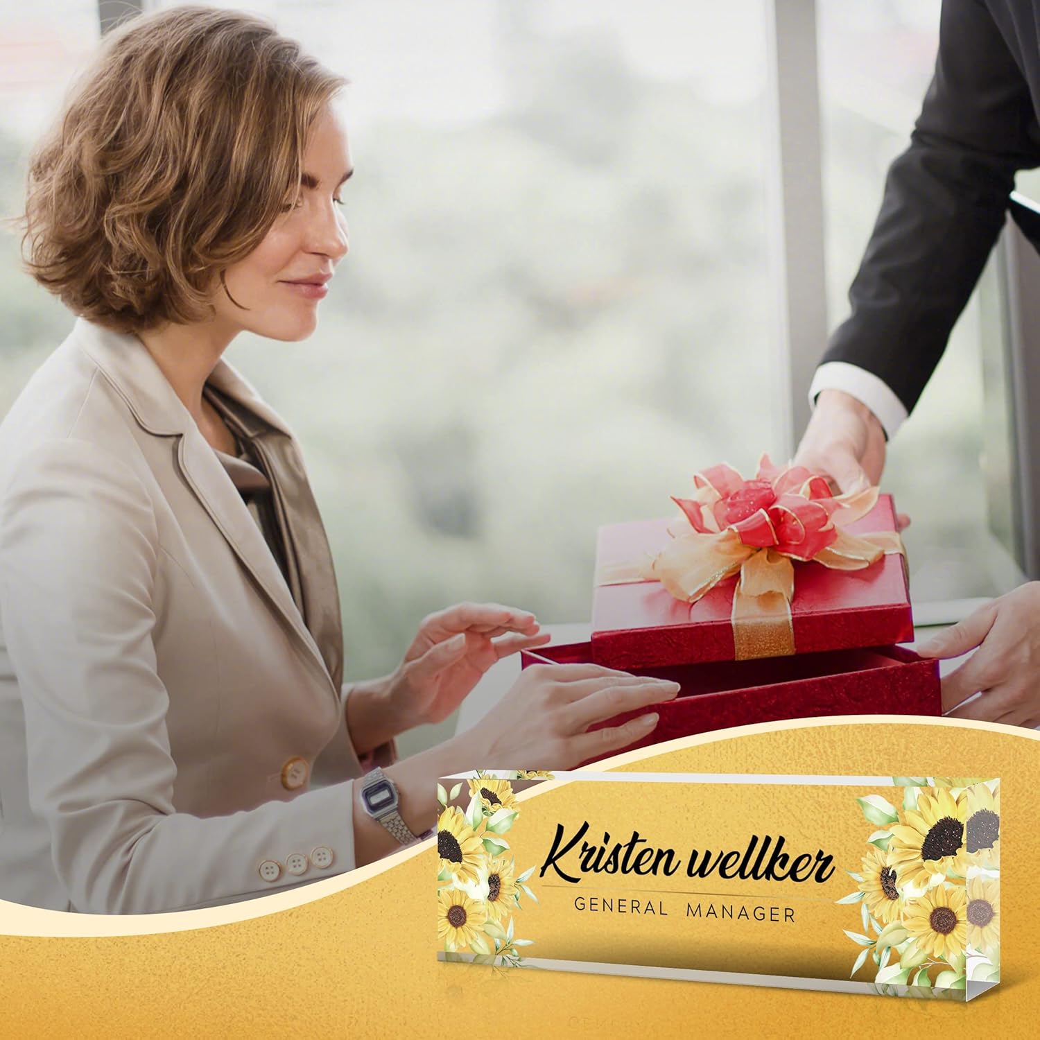 Desk Name Plate Personalized, Premium Sunflower Acrylic Desk Name Plate, Personalized Name Plate for Desk, Office Decor for Women or Men Coworkers, Boss, Employee, Teacher(Sunflower2)