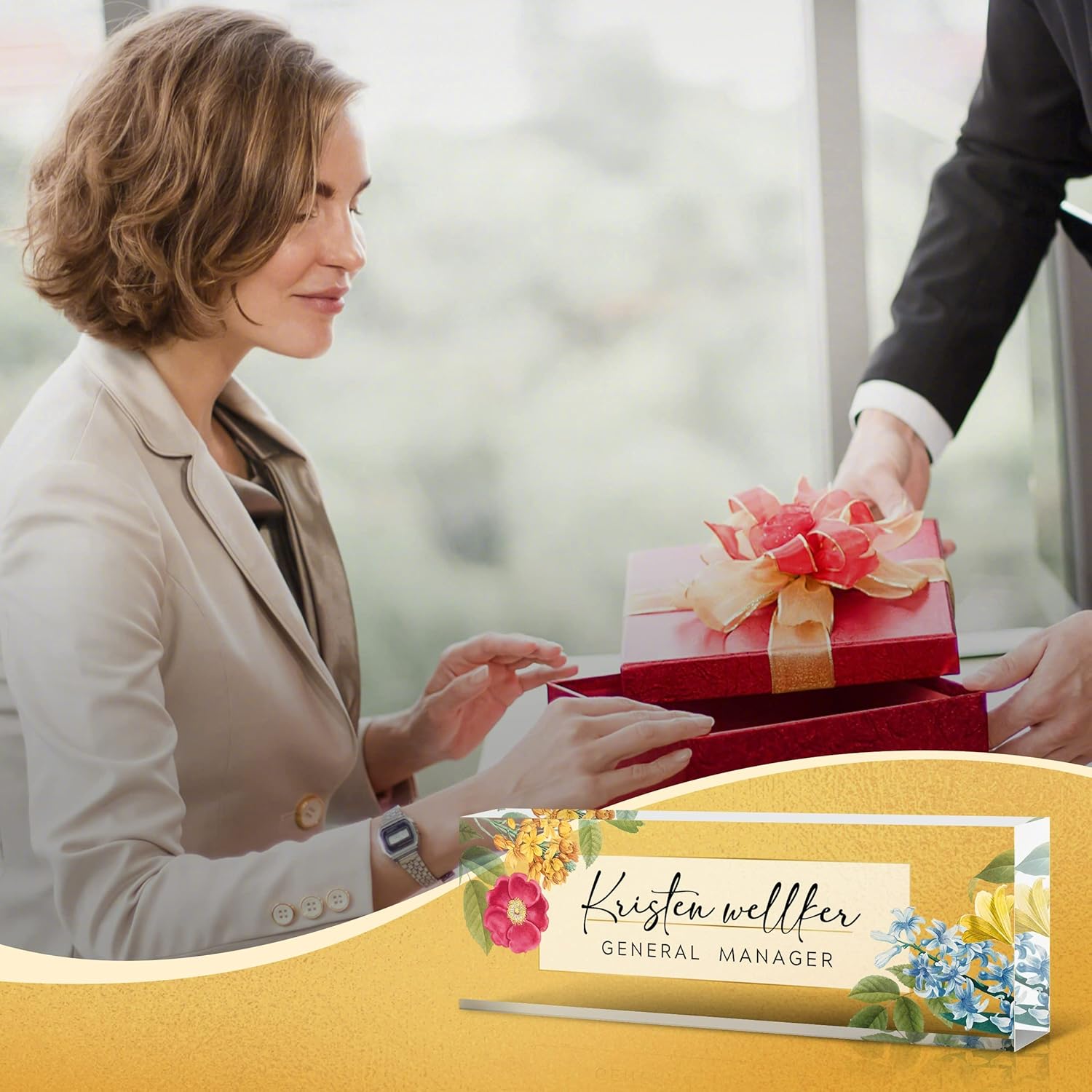 - šCustom A Great Office Decor Gift: Whether for holiday, birthday or work anniversaries, DIY a unique name plate for them, this premium acrylic glass block name plate will impress! Let your coworkers know you appreciate them.