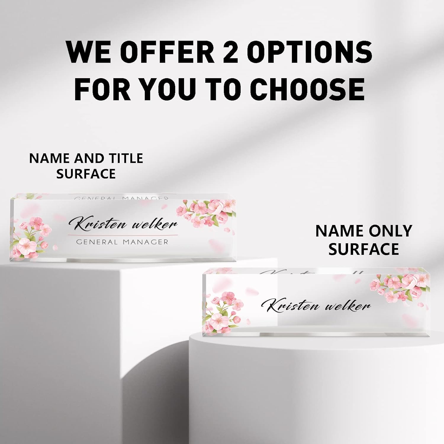 - šPremium Quality: The personalized name sign plates are made of high quality crystal clear acrylic blocks. This office nameplate will stand out on any desk! We use high-tech uv printers to print on quality clear acrylics glass so you can visualise your memories.