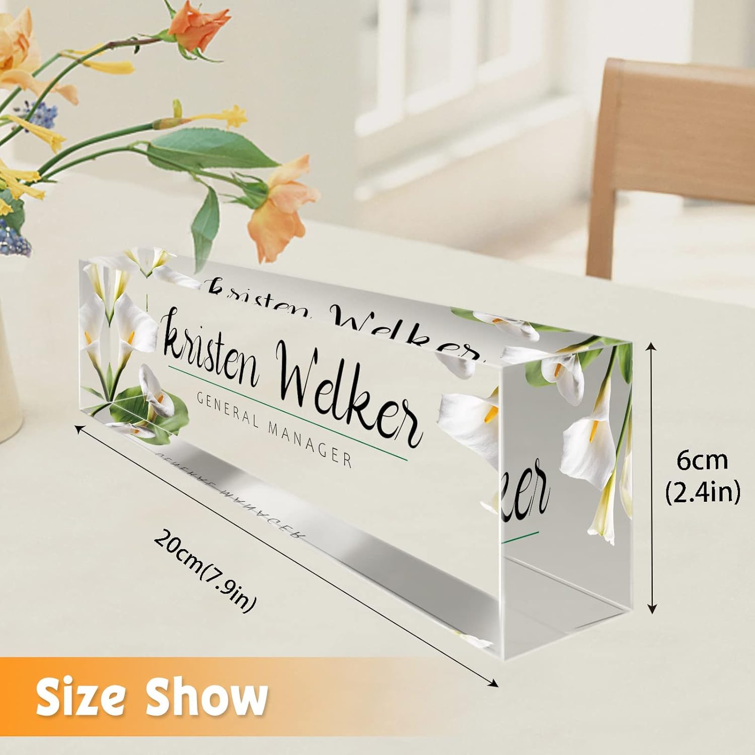 Desk Name Plate Personalized, Premium White Calla Lily Acrylic Desk Name Plate, Personalized Name Plate for Desk, Office Decor for Women or Men Coworkers, Boss, Employee, Teacher