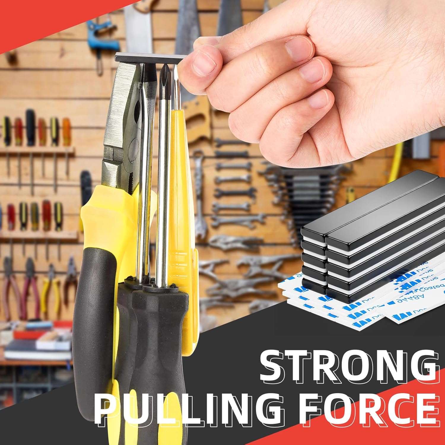 Grtard 20 Pack Bar Magnets, 60x10x3mm Permanent Rare Earth Magnets Bar, Powerful Magnets Heavy Duty Magnet Strips with Double-Sided Adhesive for Garage, Kitchen, Science, Whiteboard