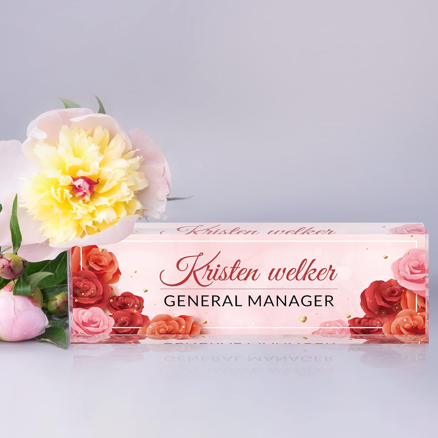 Desk Name Plate Personalized, Premium Rose Acrylic Desk Name Plate, Personalized Name Plate for Desk, Office Decor for Women or Men Coworkers, Boss, Employee, Teacher